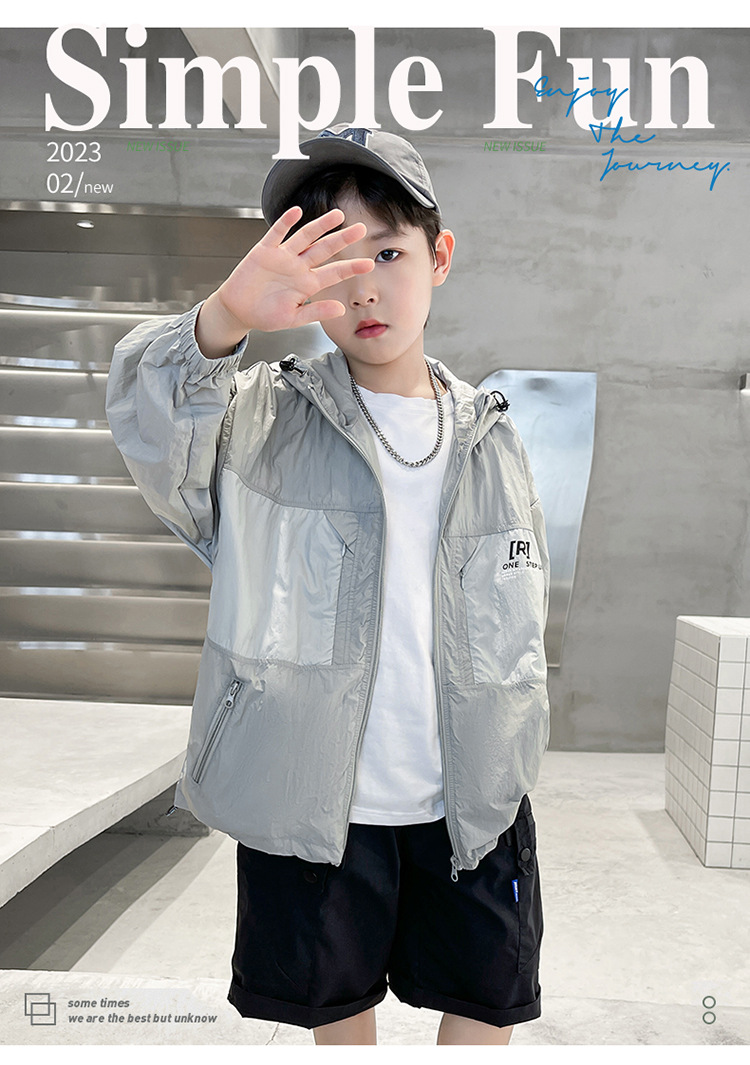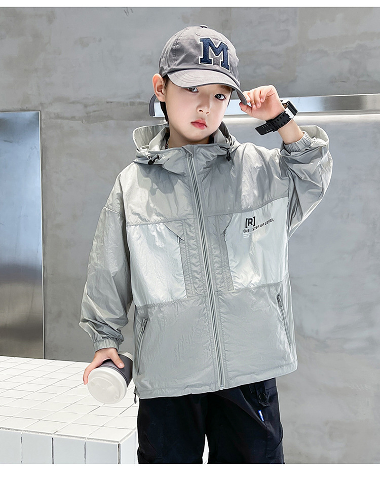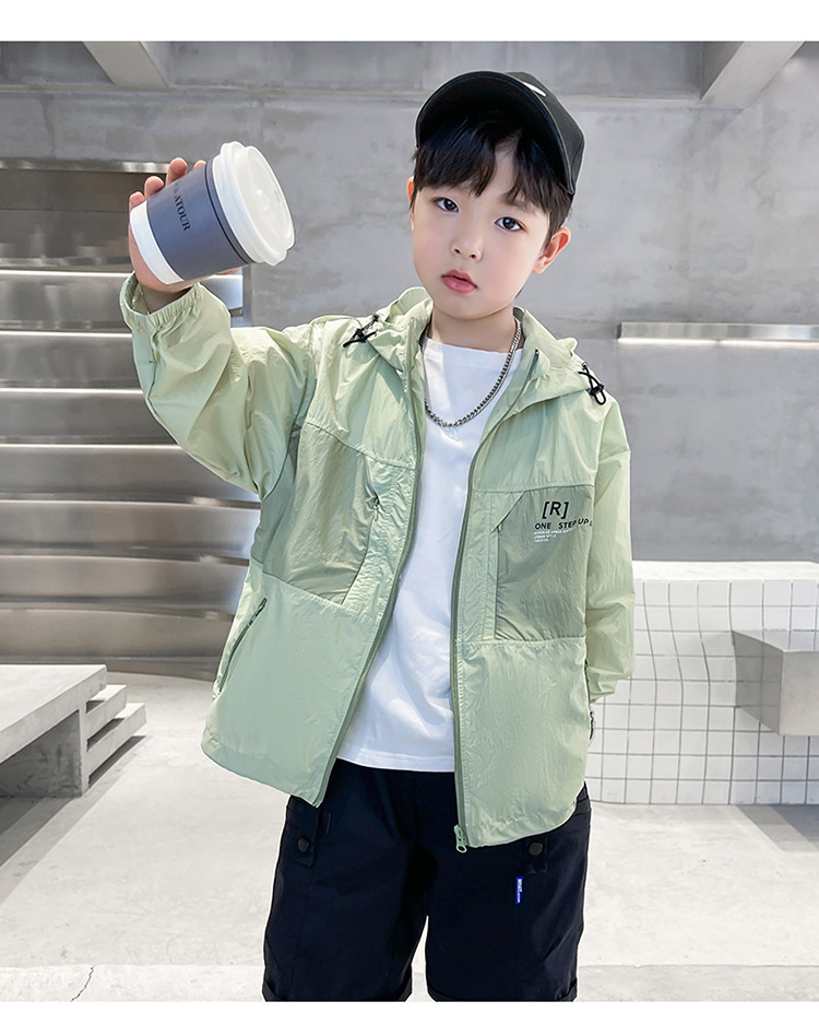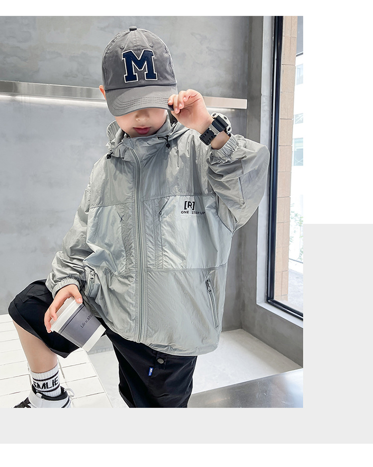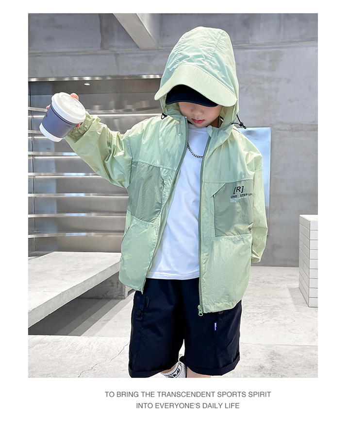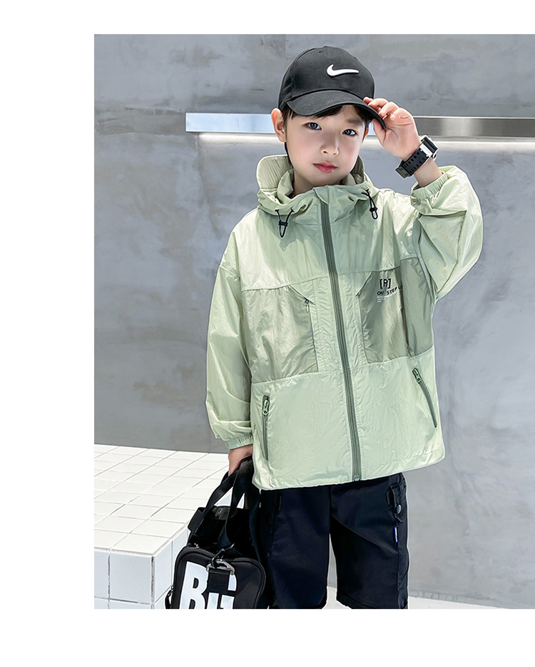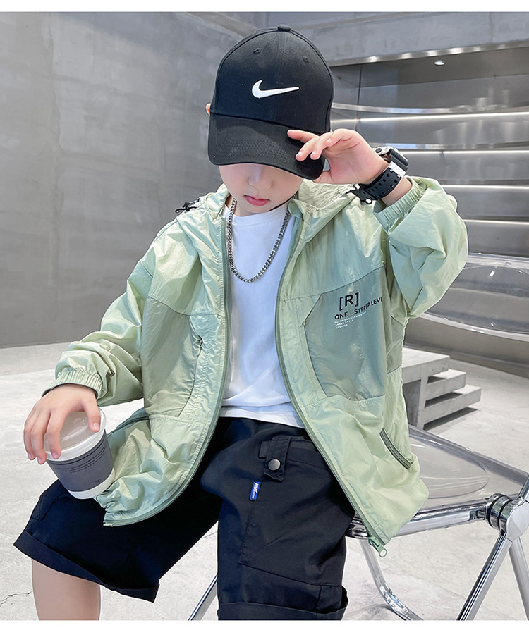 어린이 의류 소년의 여름 태양 보호 의류 코트 2024 신식 중형 및 대형 어린이 여름 소년의 얇은 통기성 태양 보호 의류