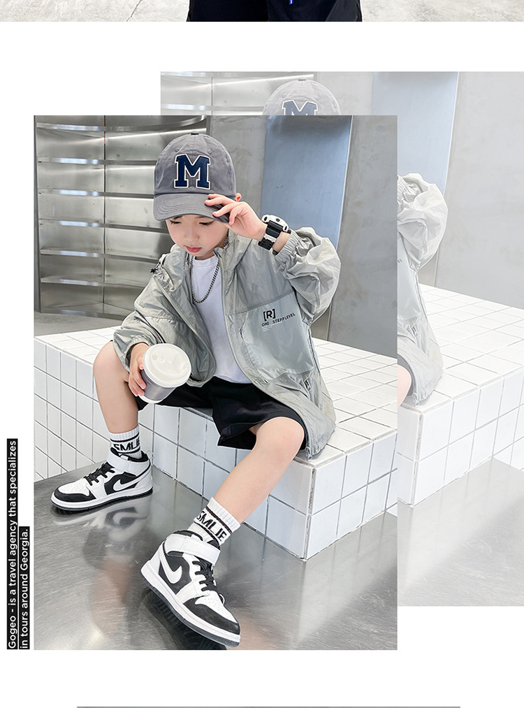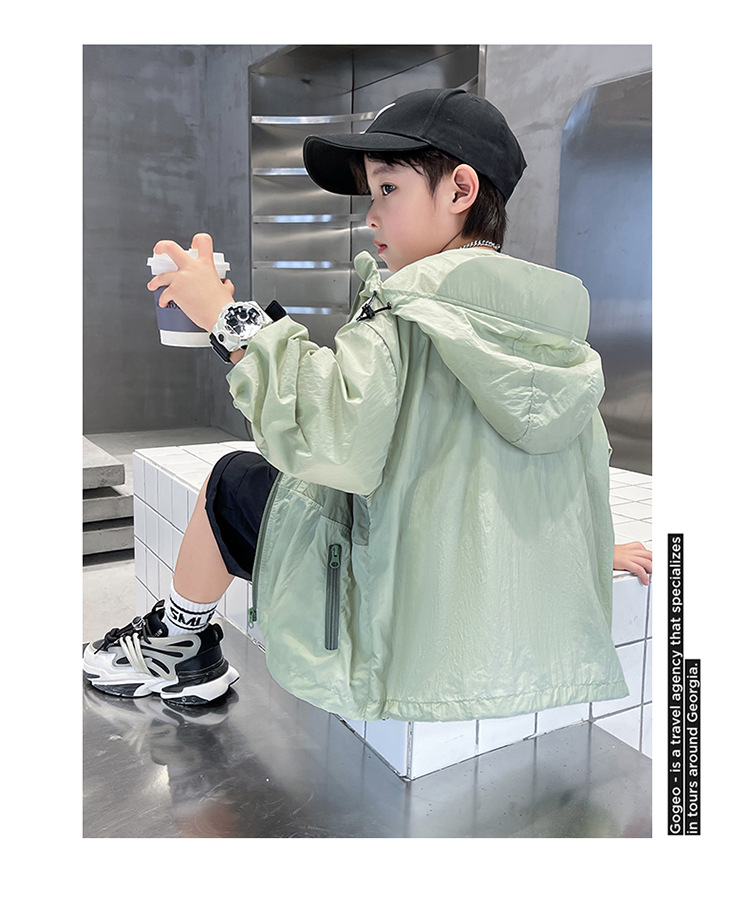 어린이 의류 소년의 여름 태양 보호 의류 코트 2024 신식 중형 및 대형 어린이 여름 소년의 얇은 통기성 태양 보호 의류스토어 가기