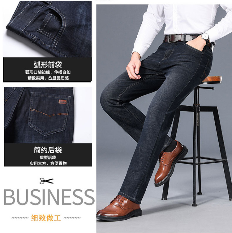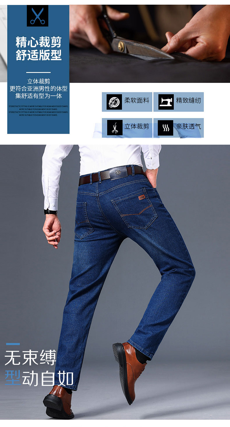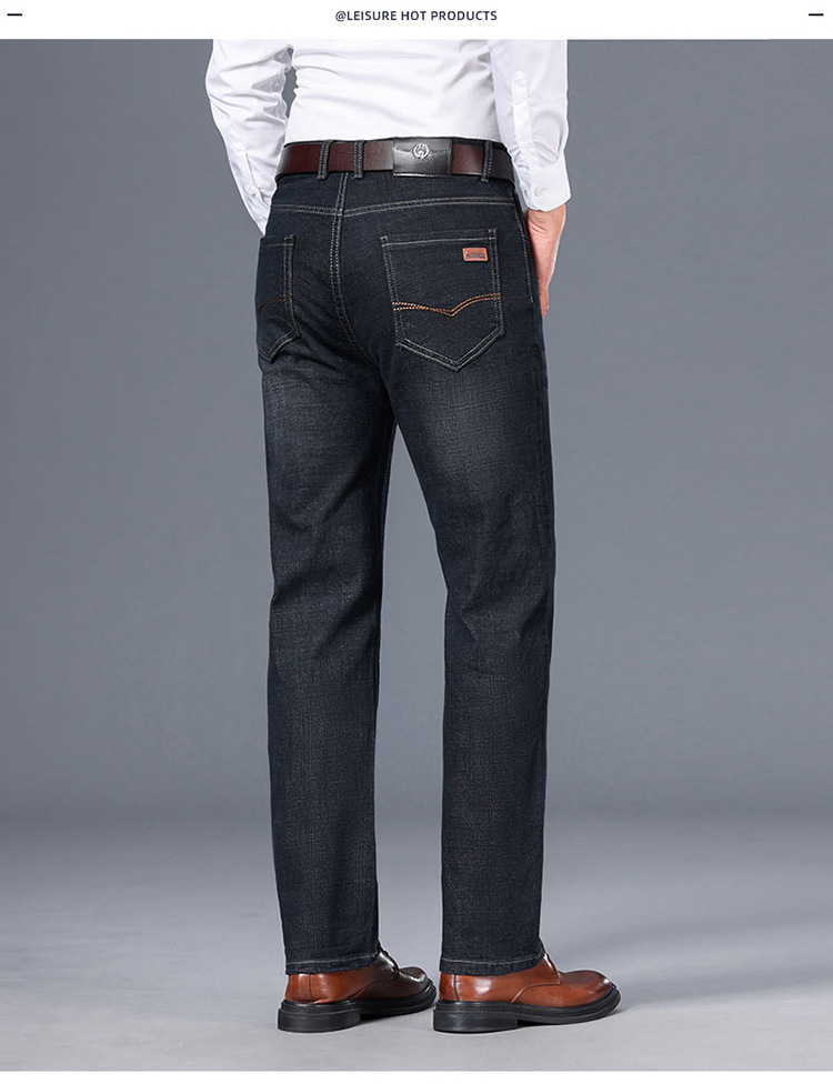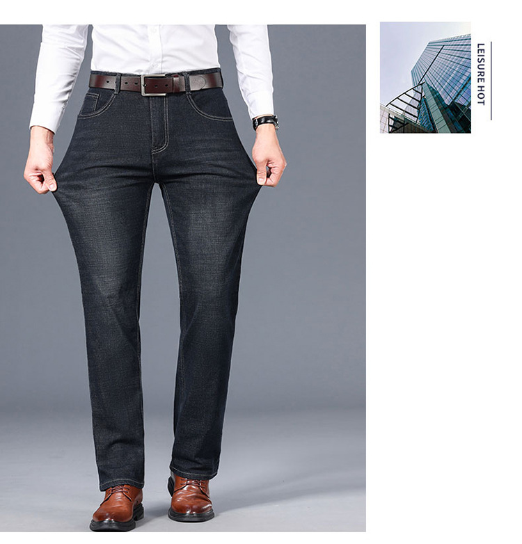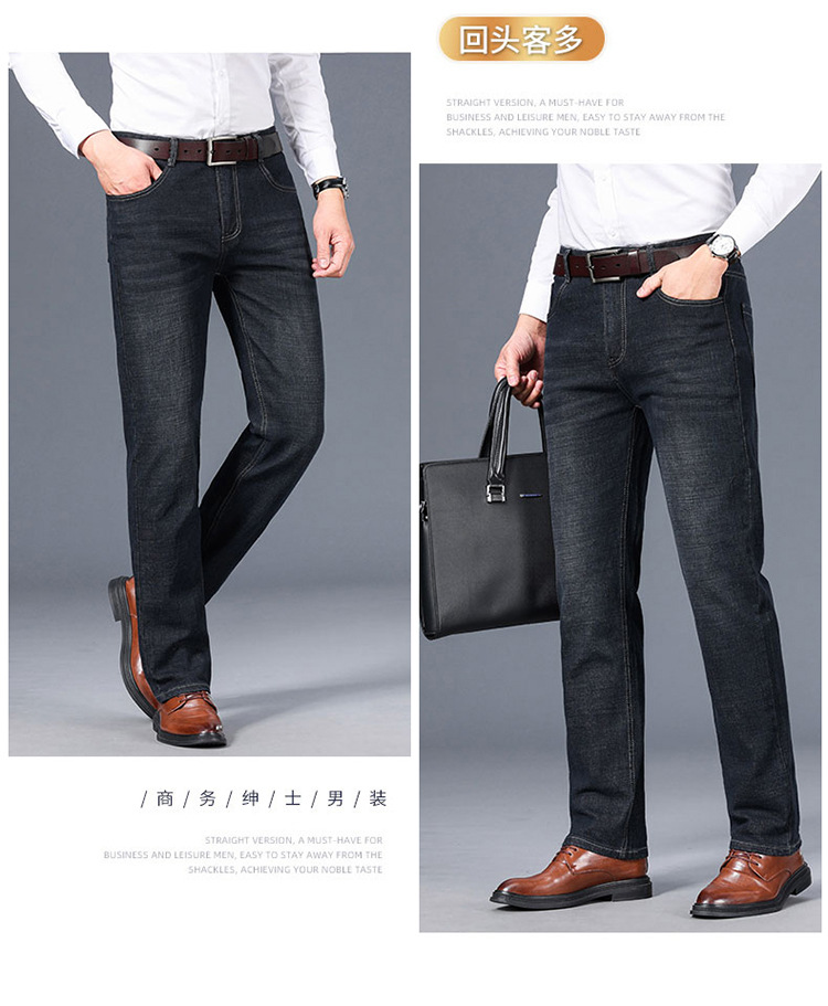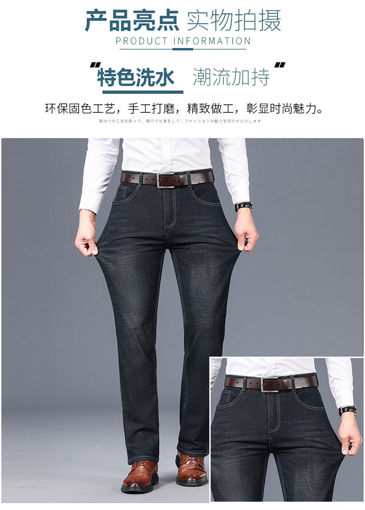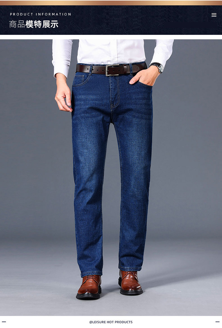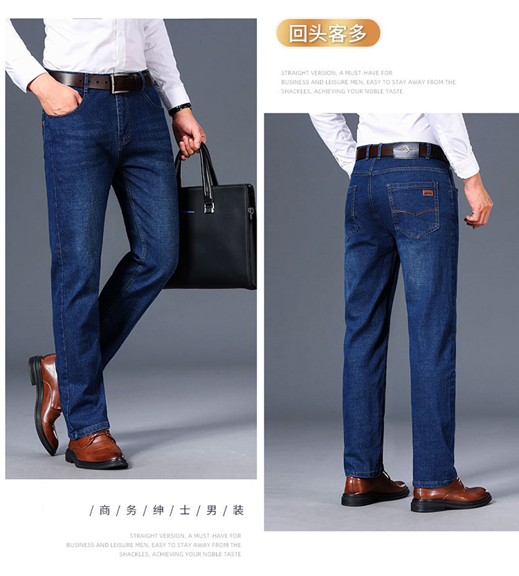 큰 여름 비즈니스 캐주얼 청바지 남성 봄과 가을 스트레이트 코튼 아버지의 아버지는 중년 통기성 바지를 씻었습니다.스토어 가기