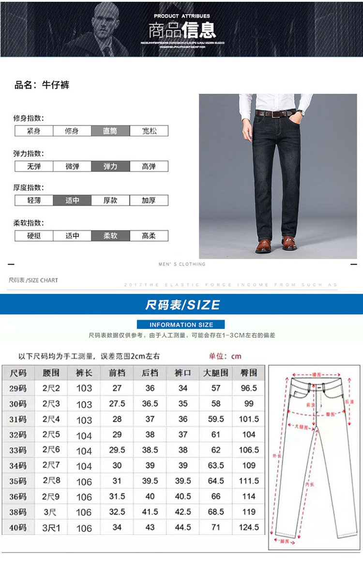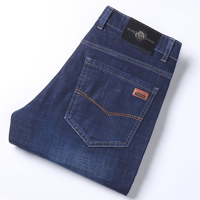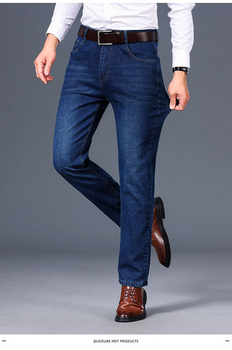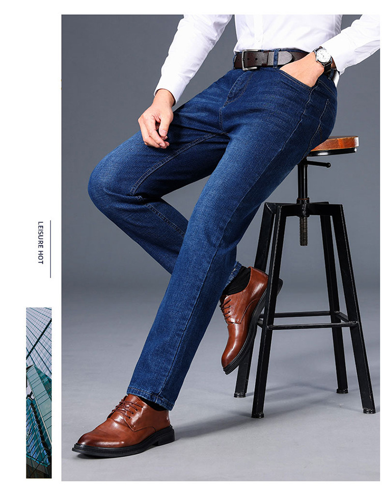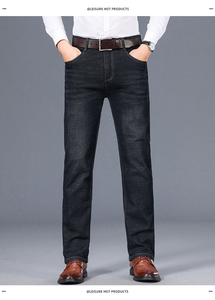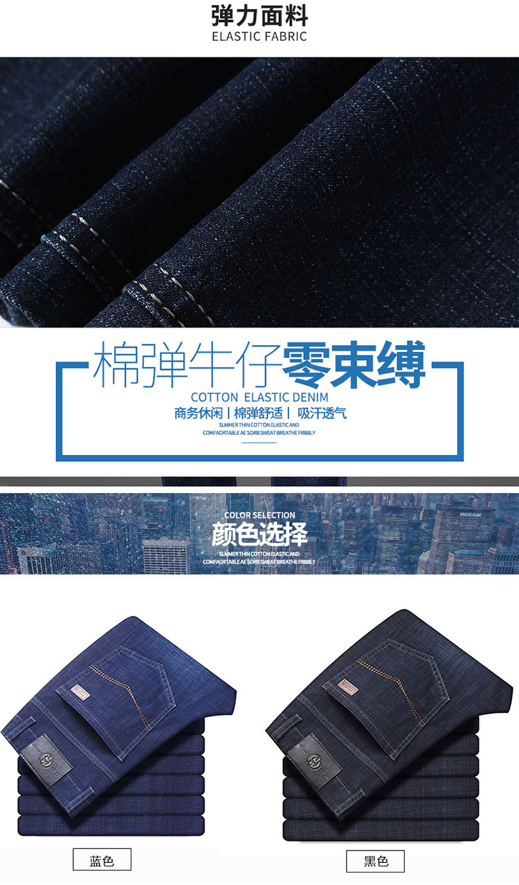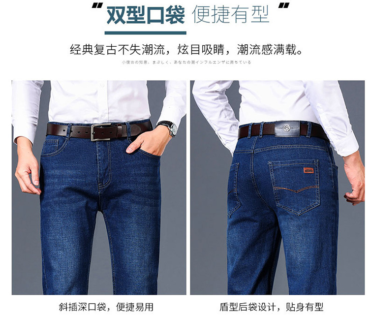 큰 여름 비즈니스 캐주얼 청바지 남성 봄과 가을 스트레이트 코튼 아버지의 아버지는 중년 통기성 바지를 씻었습니다.스토어 가기