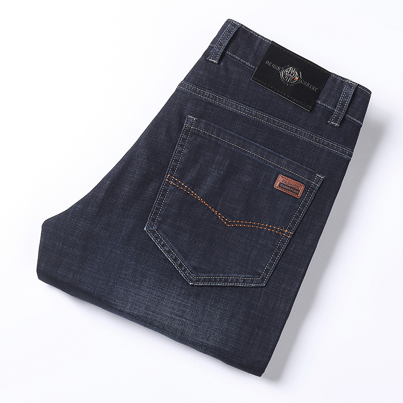 큰 여름 비즈니스 캐주얼 청바지 남성 봄과 가을 스트레이트 코튼 아버지의 아버지는 중년 통기성 바지를 씻었습니다.