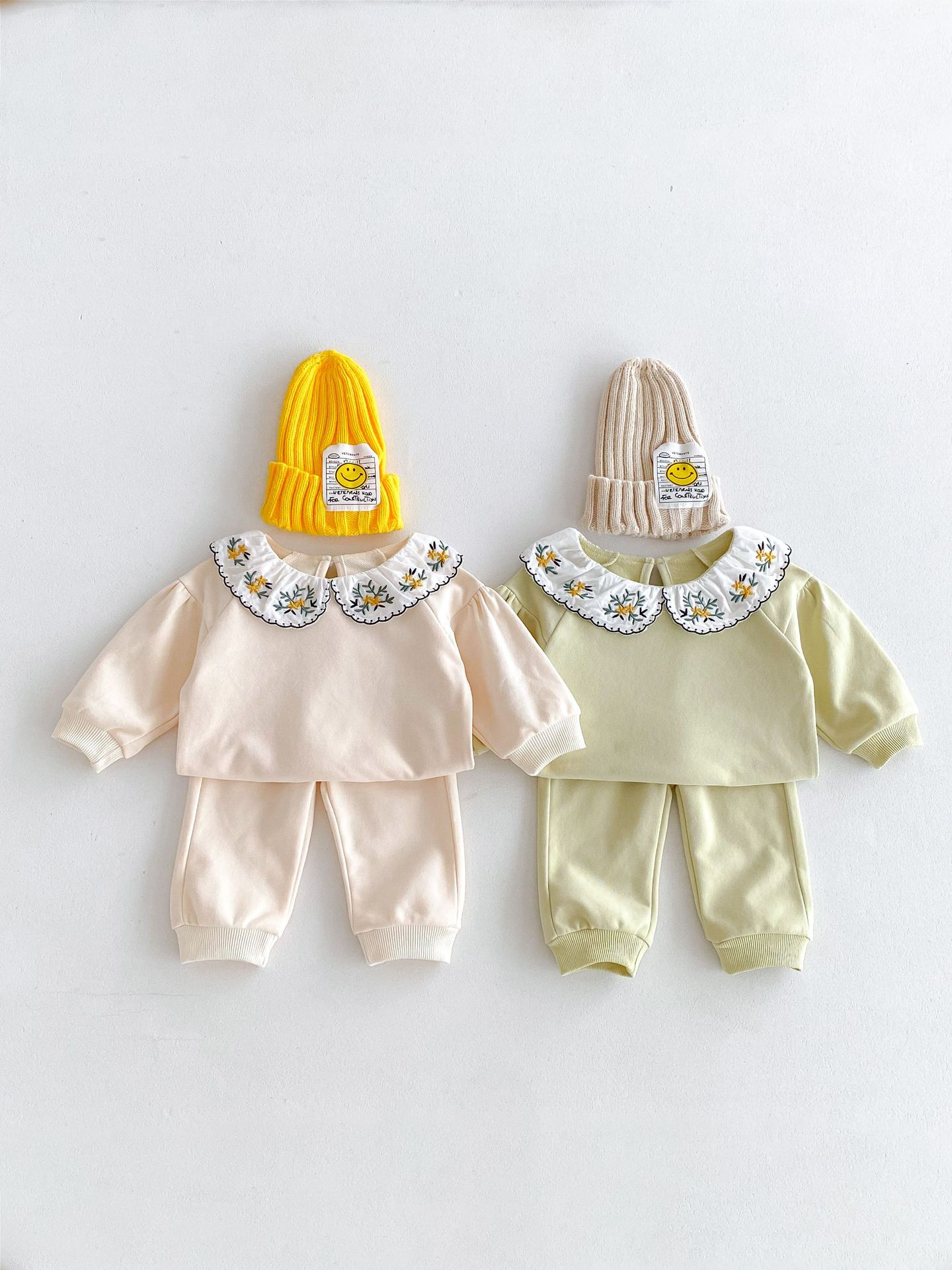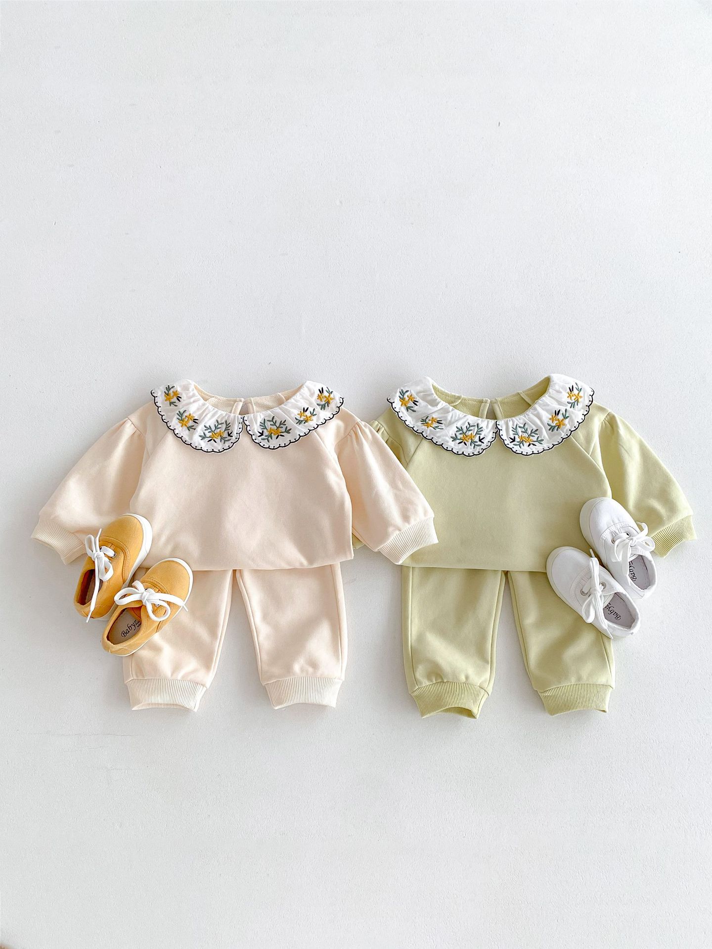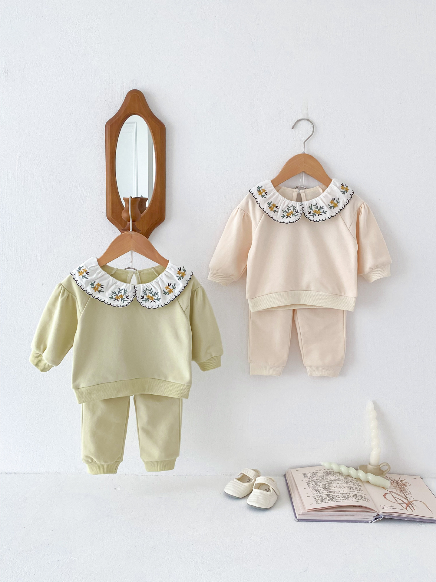 24 한국식 아기 옷 가을 풀오버 땀 바지 세트 소녀 소녀 아기 소녀 서양식 외출 투피스 세트