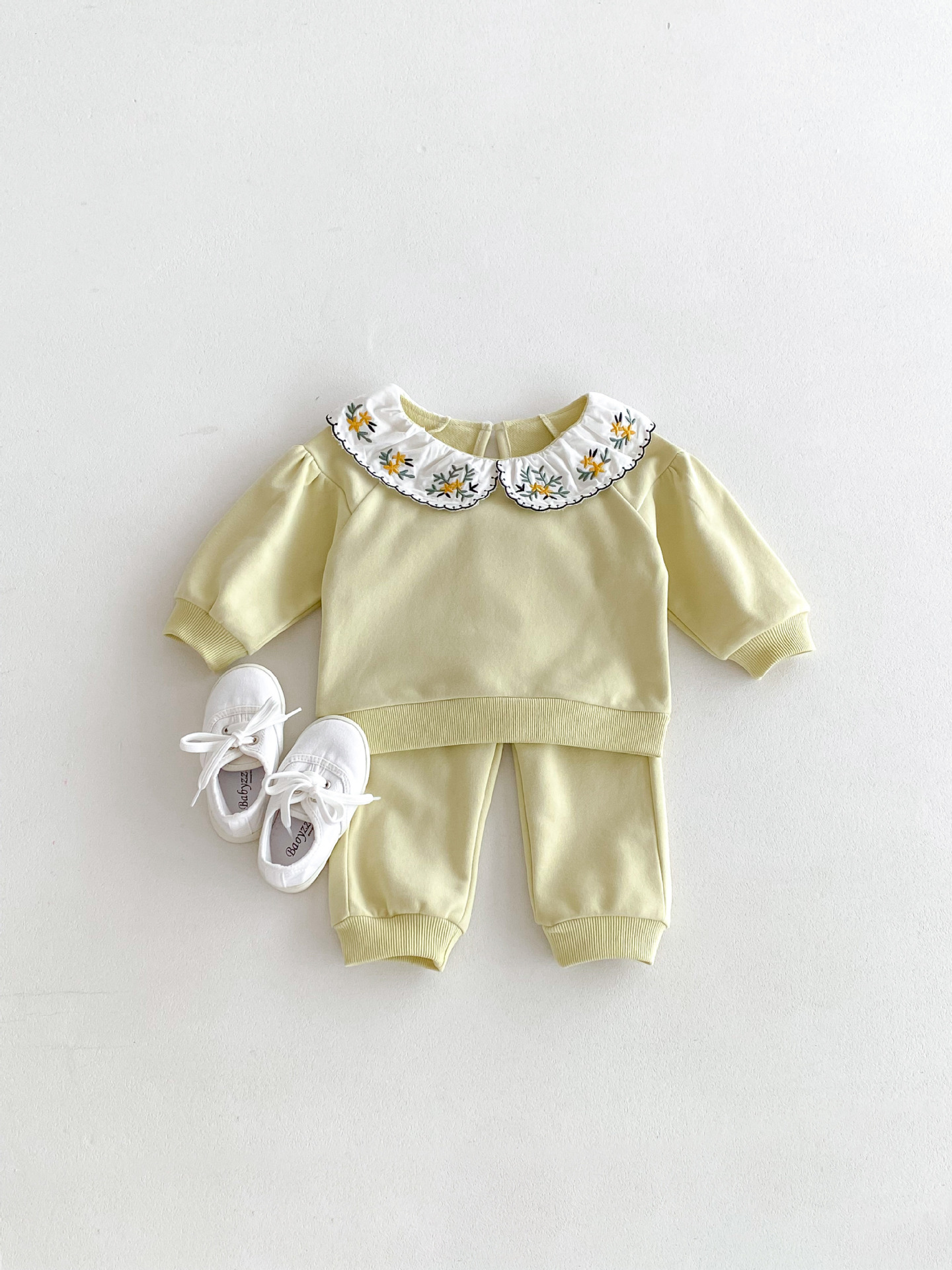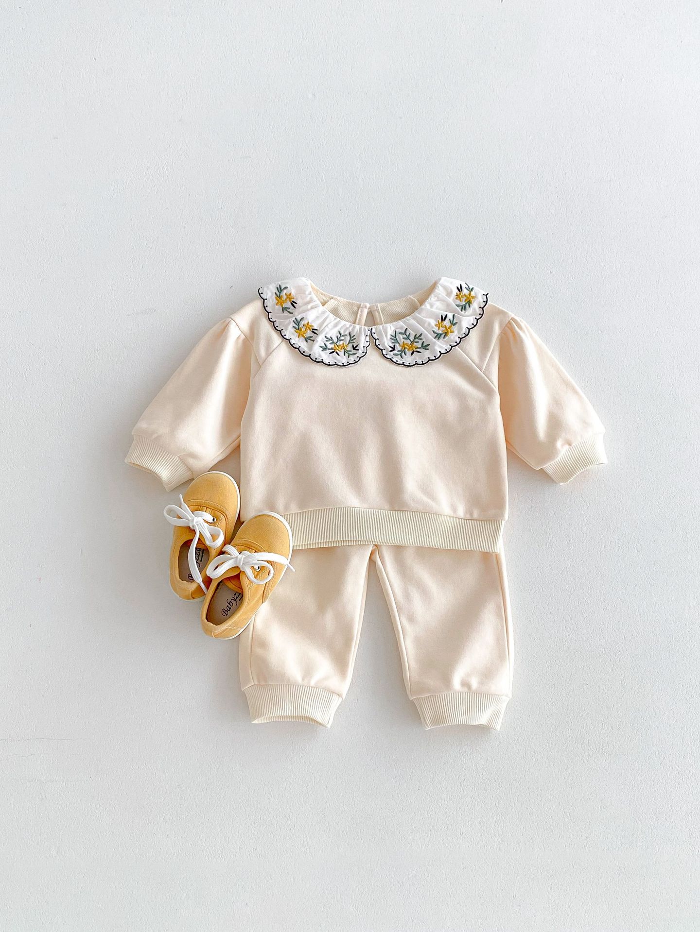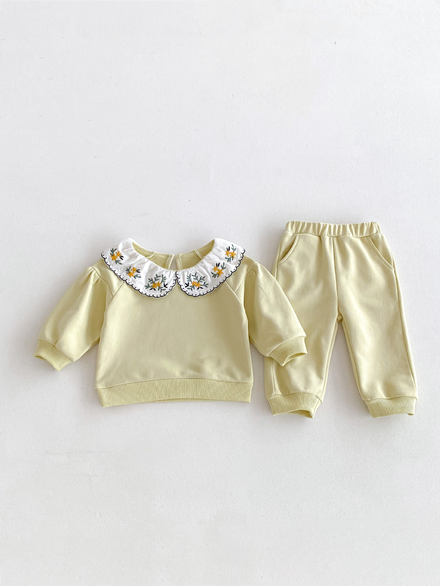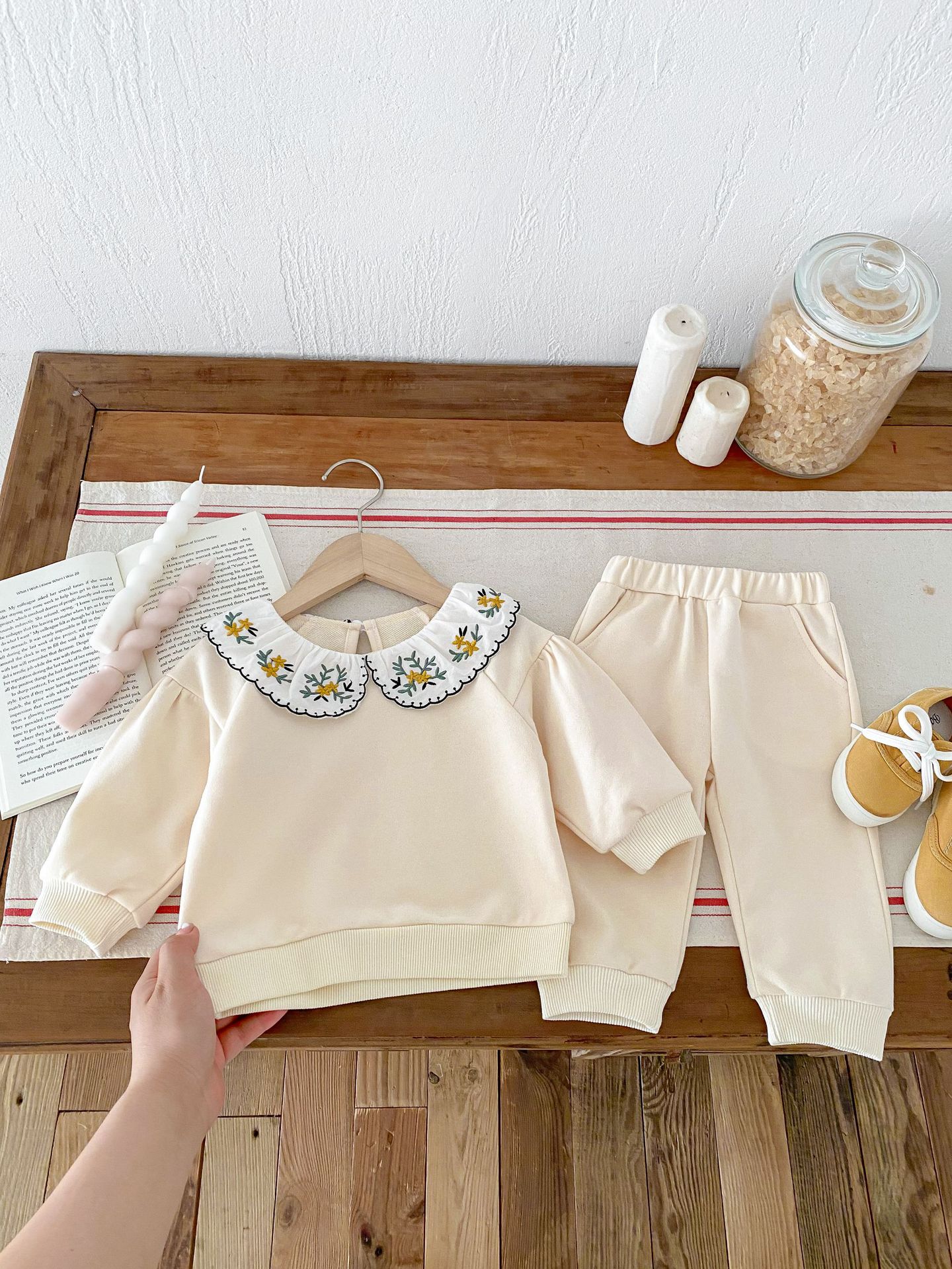 24 한국식 아기 옷 가을 풀오버 땀 바지 세트 소녀 소녀 아기 소녀 서양식 외출 투피스 세트