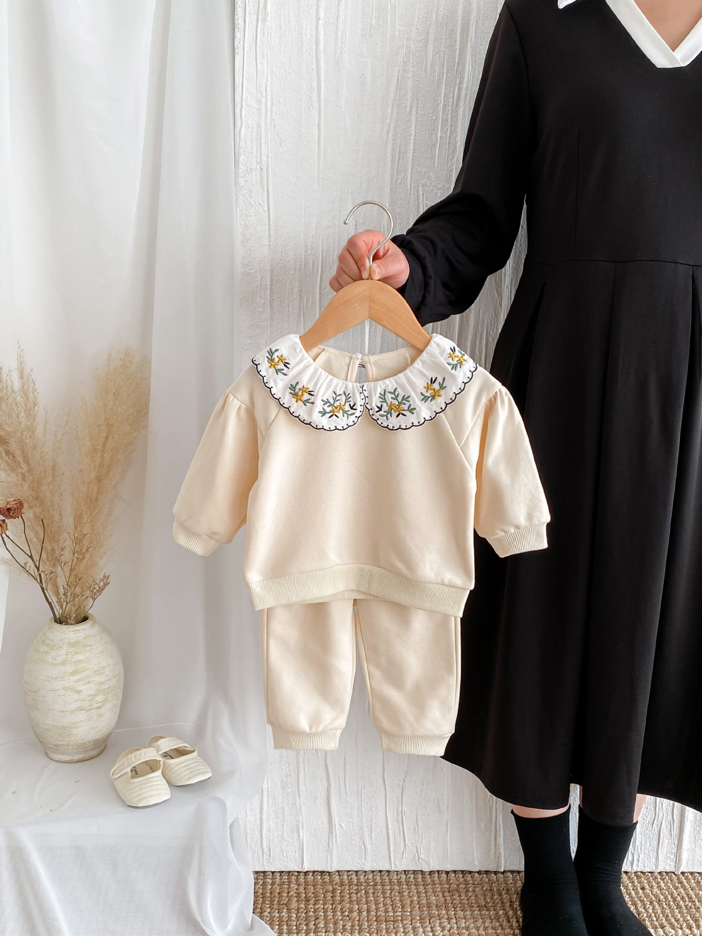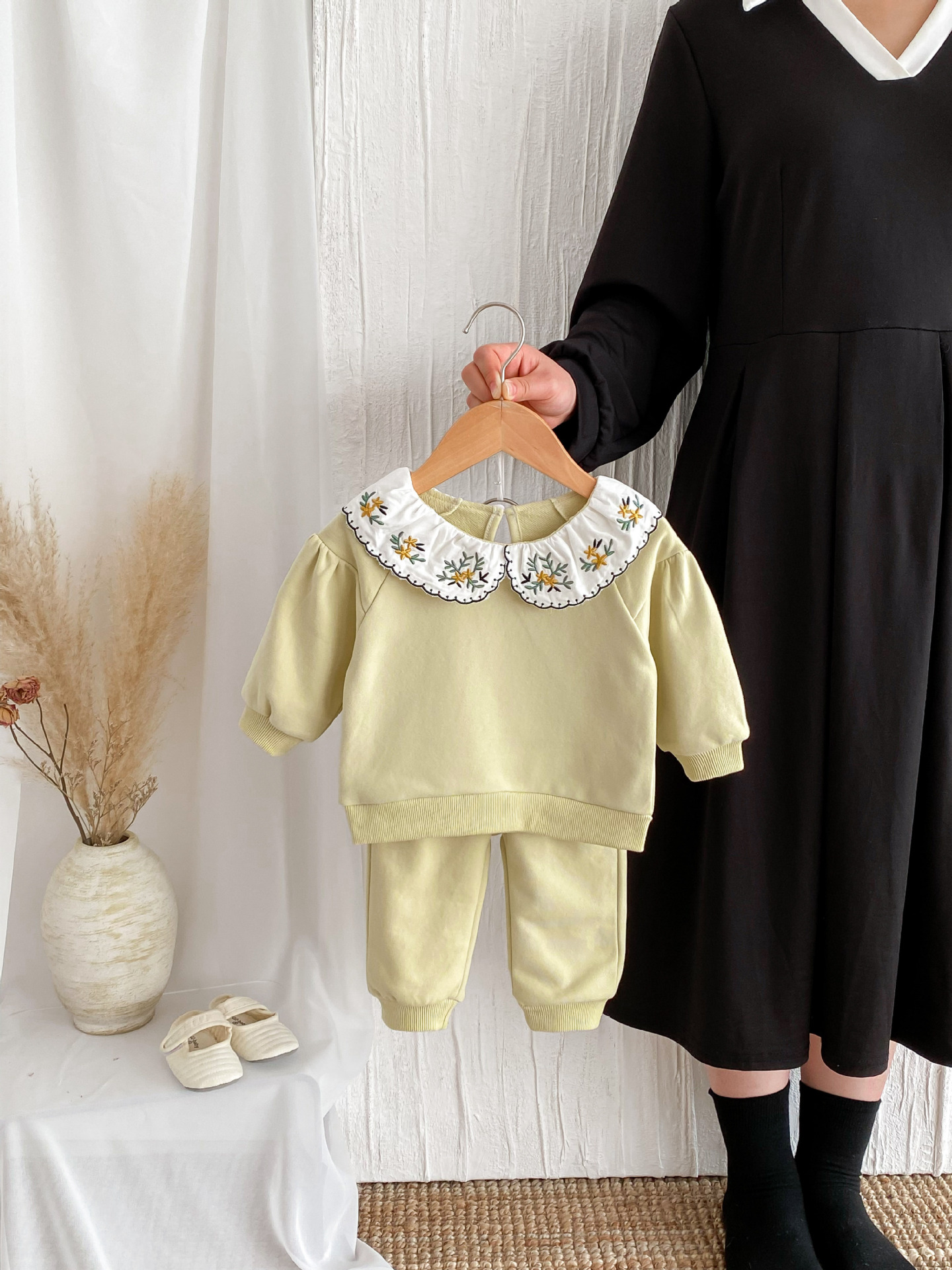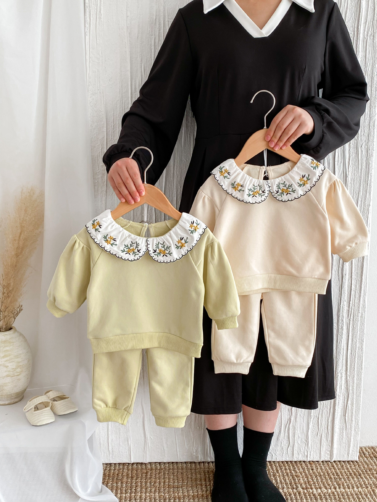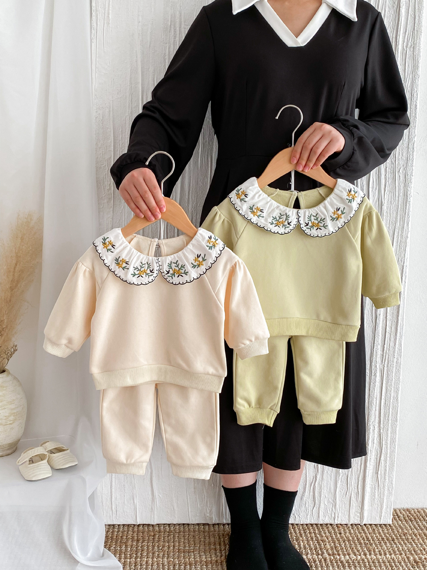 24 한국식 아기 옷 가을 풀오버 땀 바지 세트 소녀 소녀 아기 소녀 서양식 외출 투피스 세트스토어 가기
