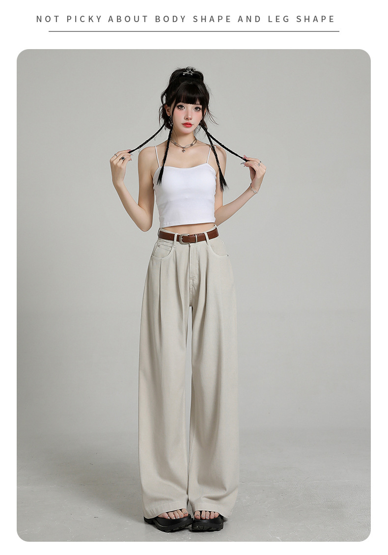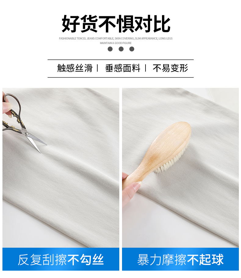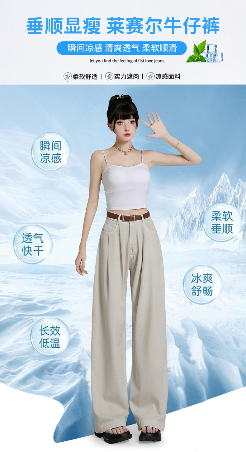 Lyocell Tensel 면화 넓은 다리 청바지 여성의 여름 얇은 높은 허리 슬리밍 바지스토어 가기