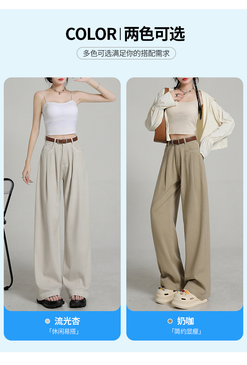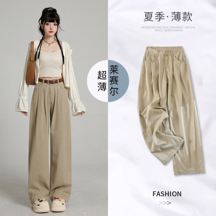 Lyocell Tensel 면화 넓은 다리 청바지 여성의 여름 얇은 높은 허리 슬리밍 바지