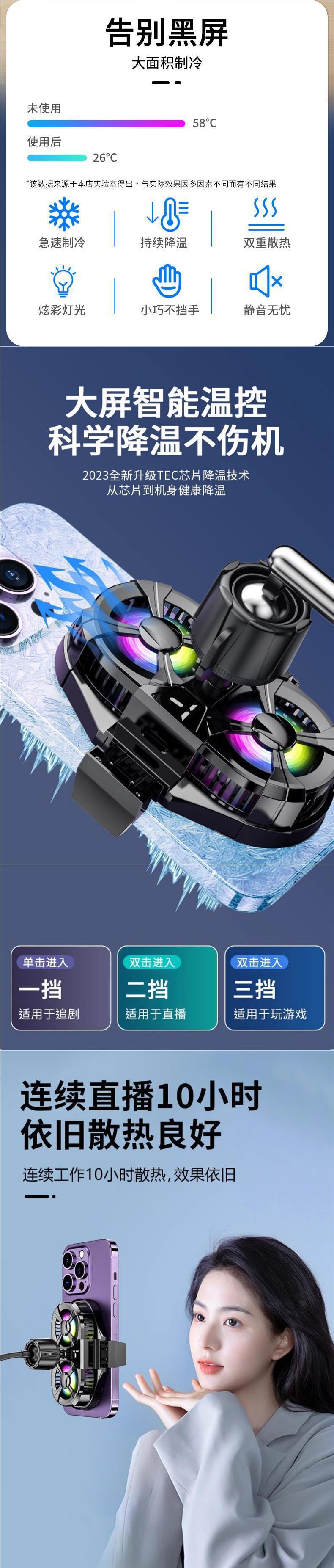 直播专用】手机散热器降温神器半导体制冷超静音冰封背夹一体支架스토어 가기
