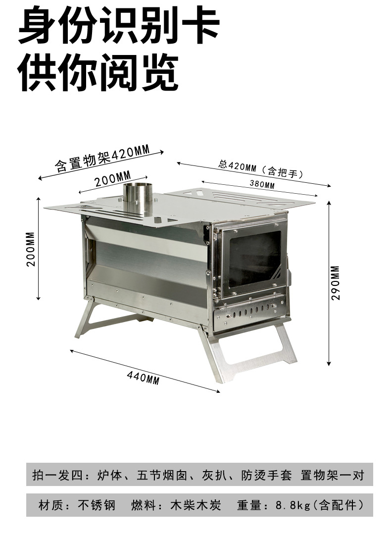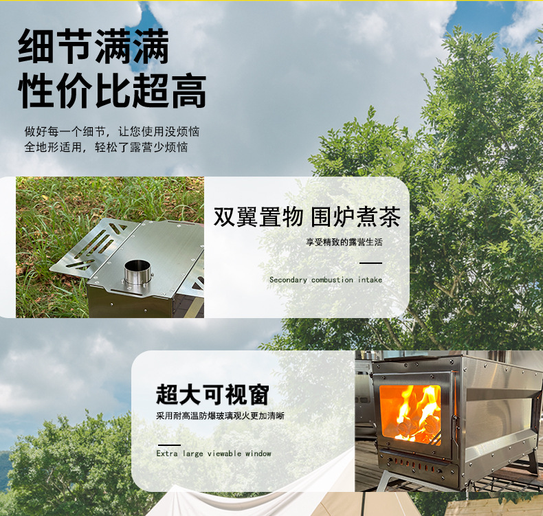 오렌지 포멜로 야외 캠핑 올인원 스테인레스 스틸 데스크탑 스토브 캠핑 텐트 난방 장작 스토브 가정용 바베큐 스토브