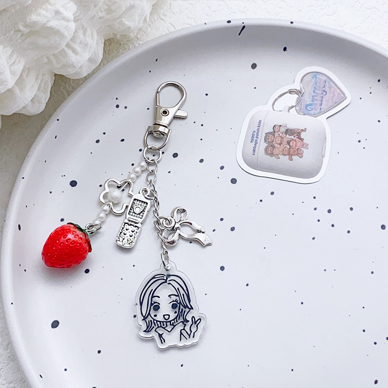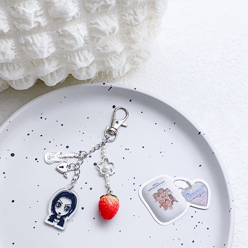 가벼운 아크릴 소녀의 아바타 딸기 활 전화 기타 구슬 키 체인 휴대 전화 체인 가방 체인 여성스토어 가기