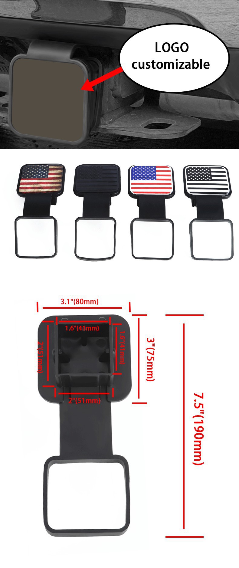 국경 간 자동차 수정 부품 트레일러 후크 먼지 플러그 오프로드 차량 플러그 견인 사각형 입 보호 커버 2 인치스토어 가기