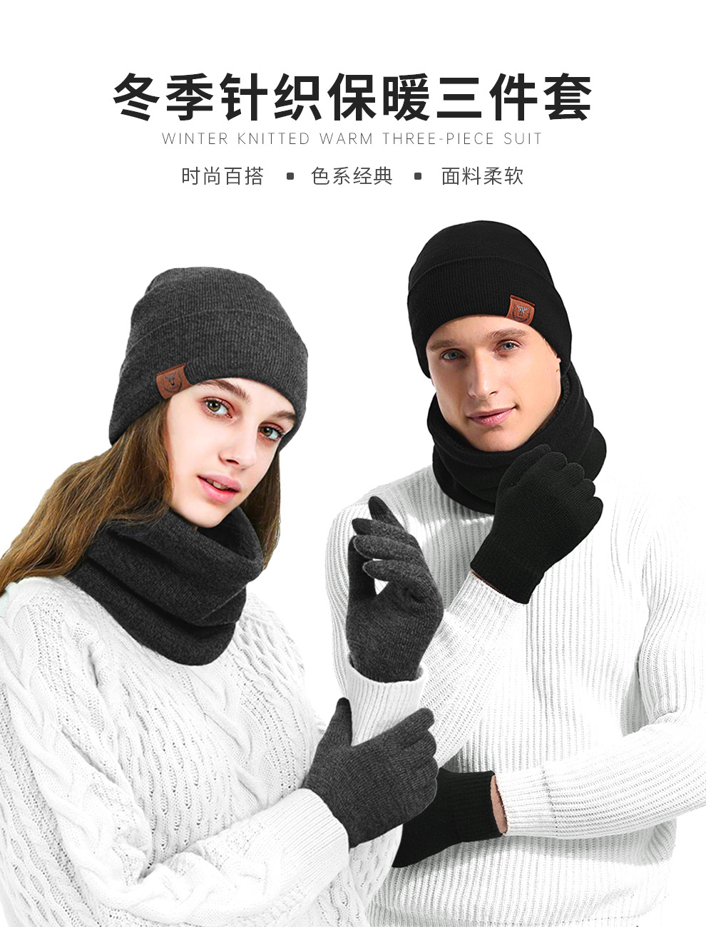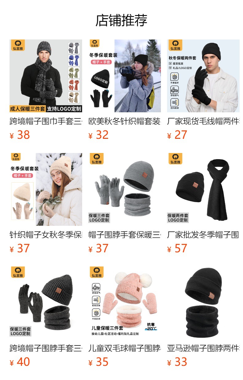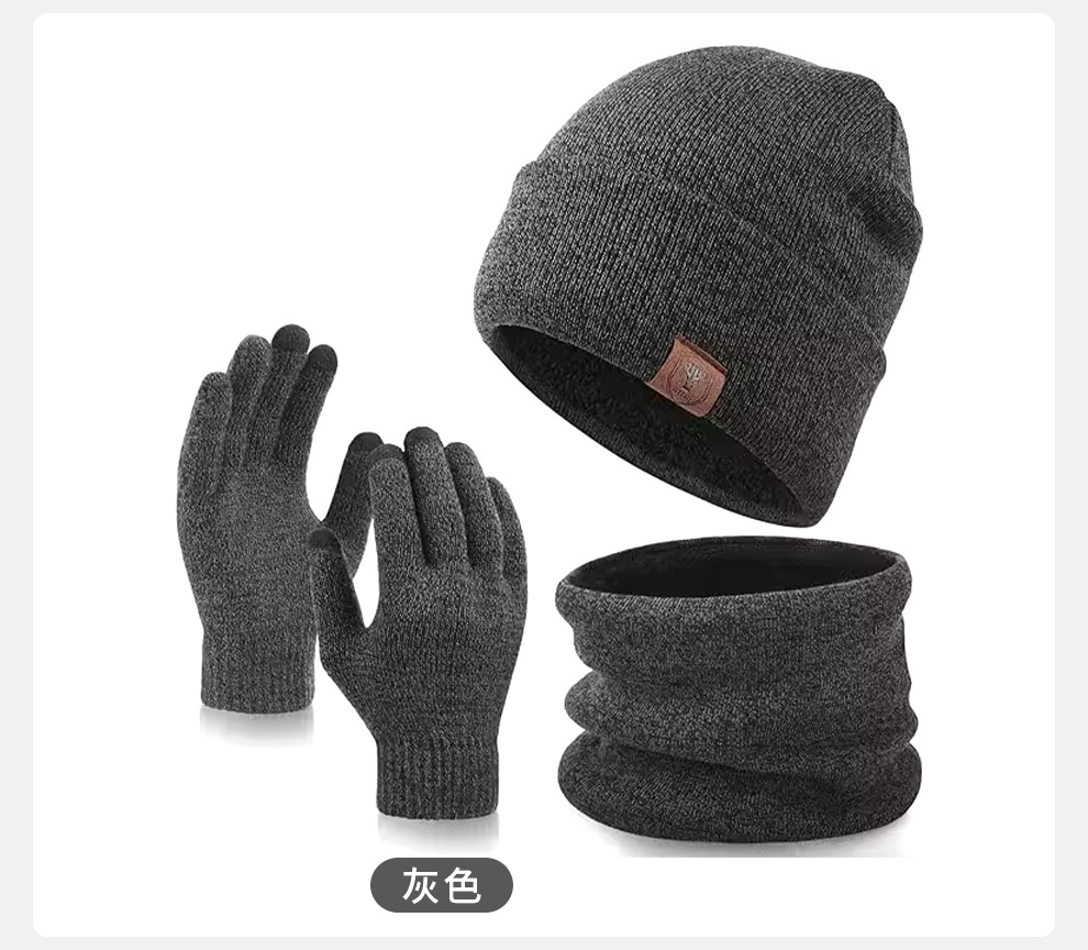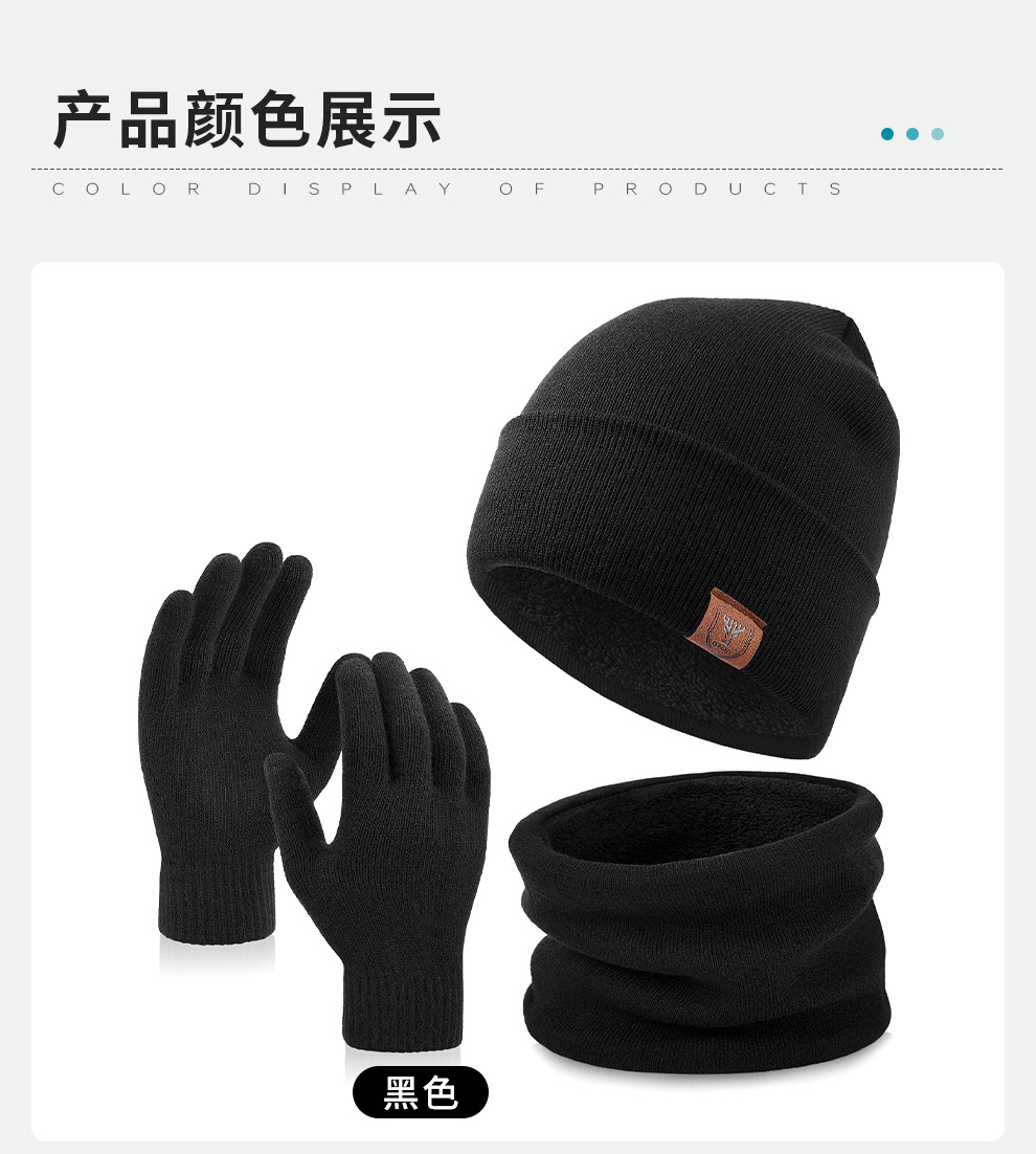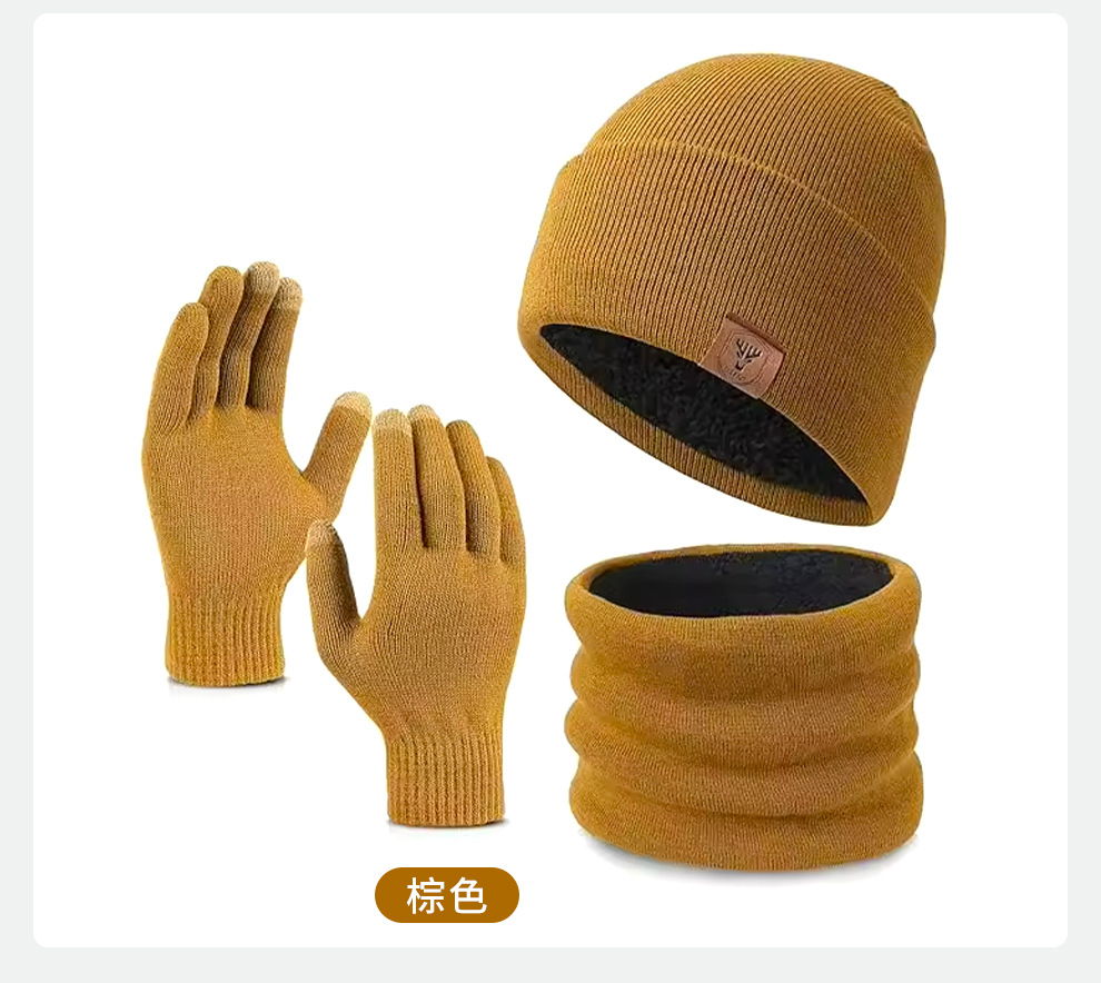 아마존 모자, 목도리, 장갑 3종 세트 유럽 및 미국 가을 겨울 이중 레이어 플리스 보온 모자 3종 세트 재고 있음