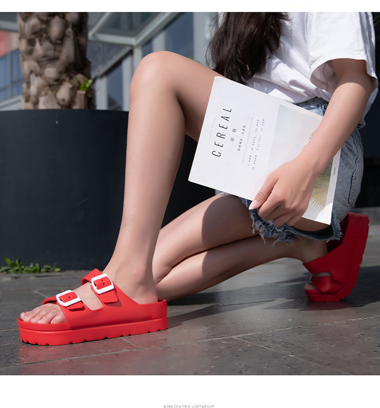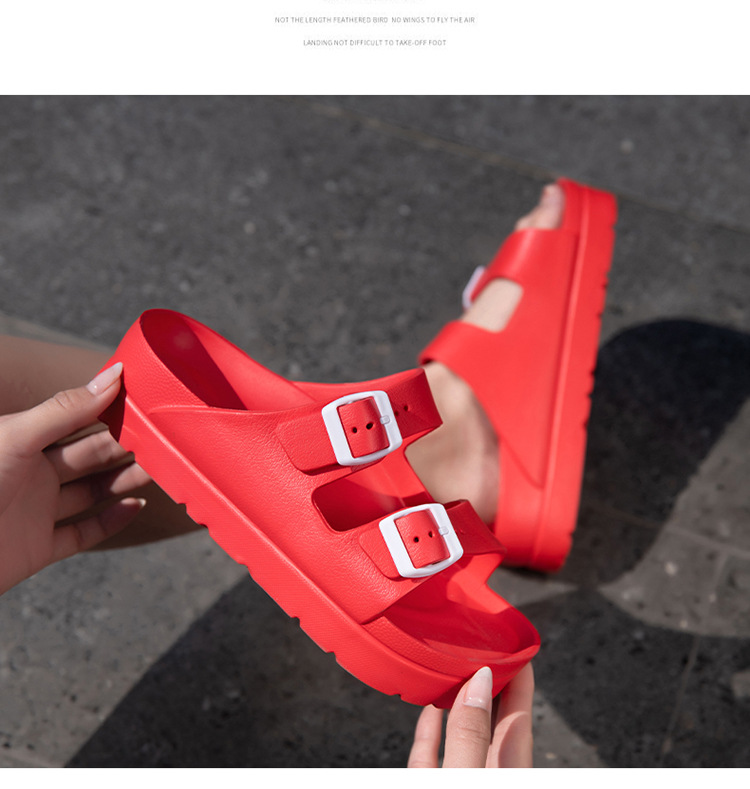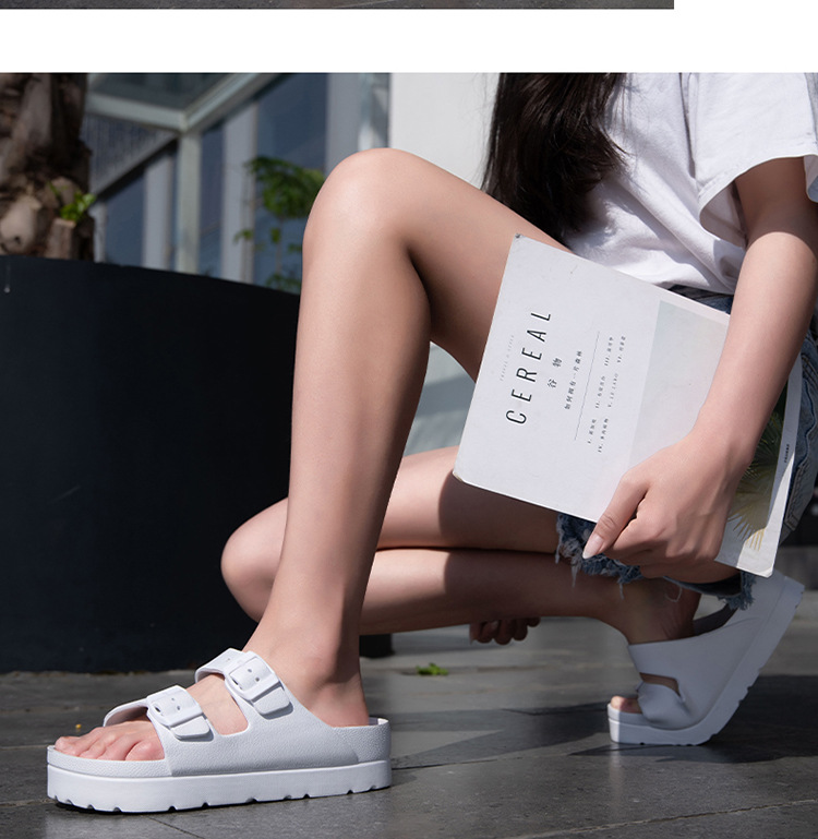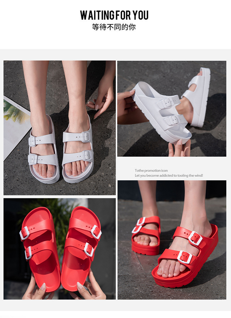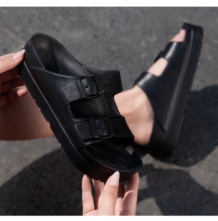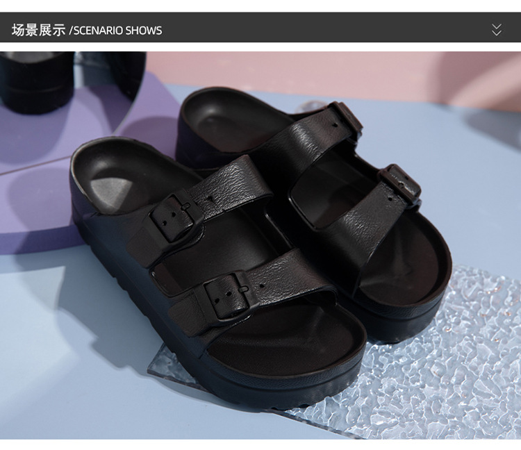 여성용 두꺼운 밑창 슬리퍼 보켄 슈즈 더블 스트랩 키높이 버클 샌들 하이힐 캐주얼 다용도 키높이 슬림 효과
