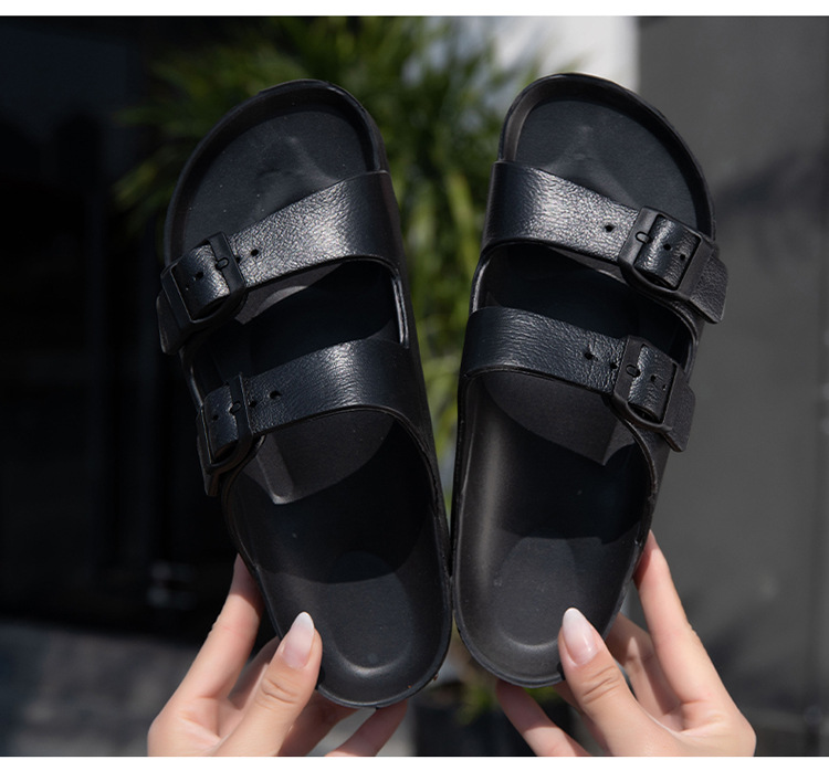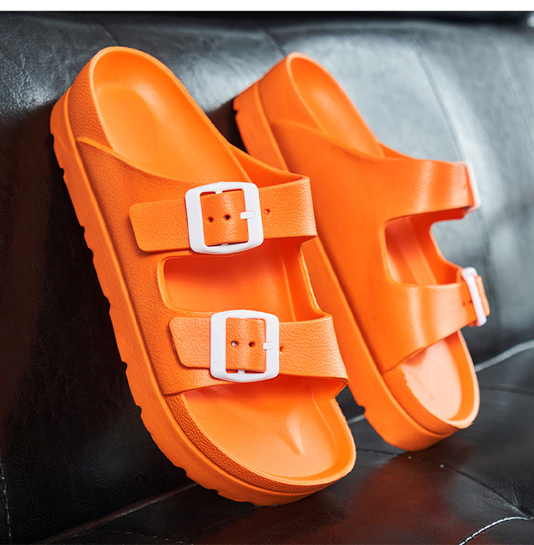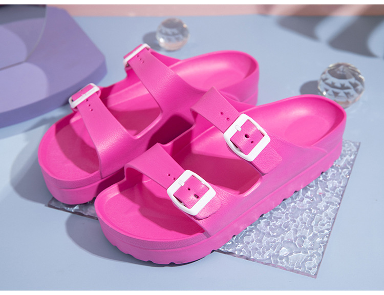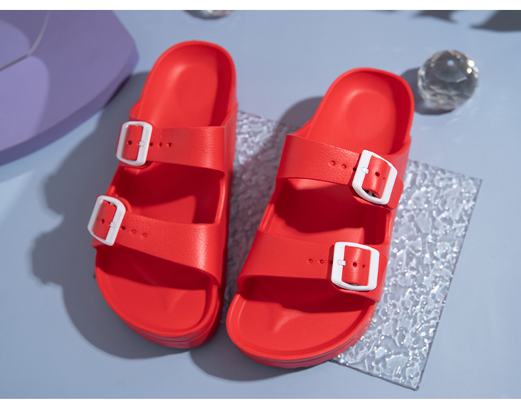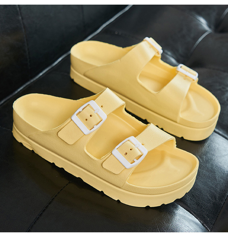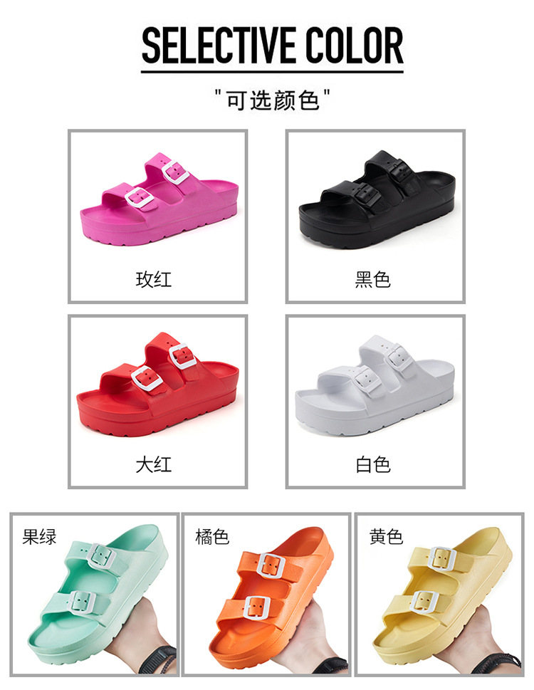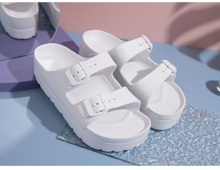 여성용 두꺼운 밑창 슬리퍼 보켄 슈즈 더블 스트랩 키높이 버클 샌들 하이힐 캐주얼 다용도 키높이 슬림 효과