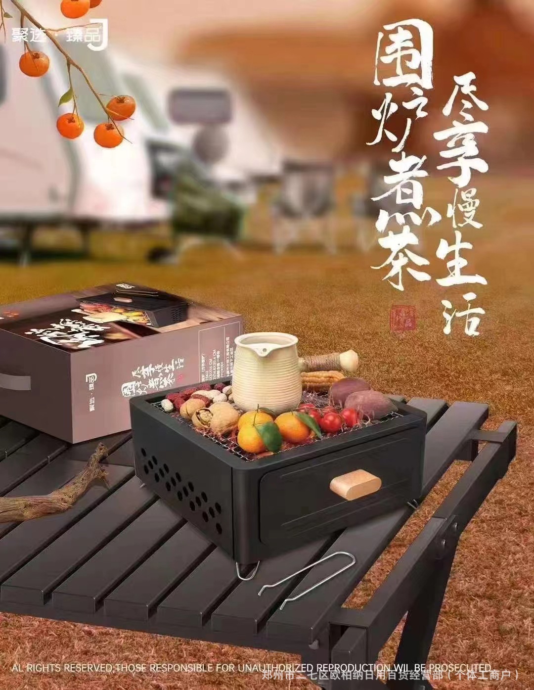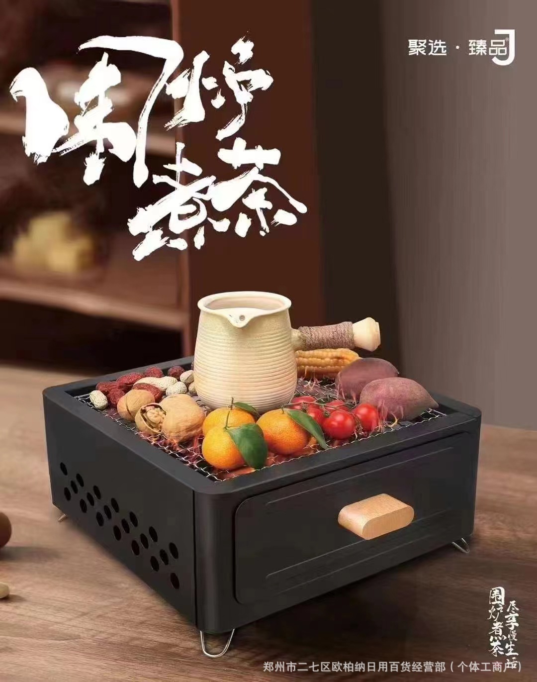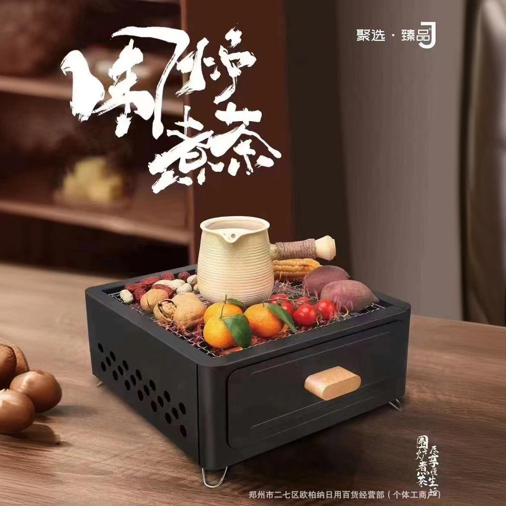 Juxuan. 사각형 바베큐 그릴, 차 냄비, 주전자, 차 요리기구, 실내 가정용 바베큐 그릴 풀 세트스토어 가기