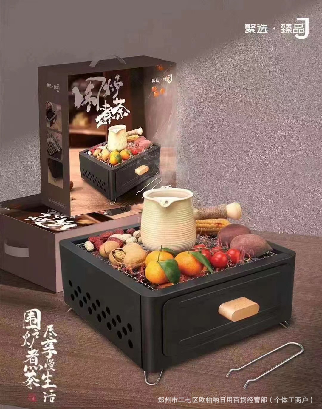 Juxuan. 사각형 바베큐 그릴, 차 냄비, 주전자, 차 요리기구, 실내 가정용 바베큐 그릴 풀 세트