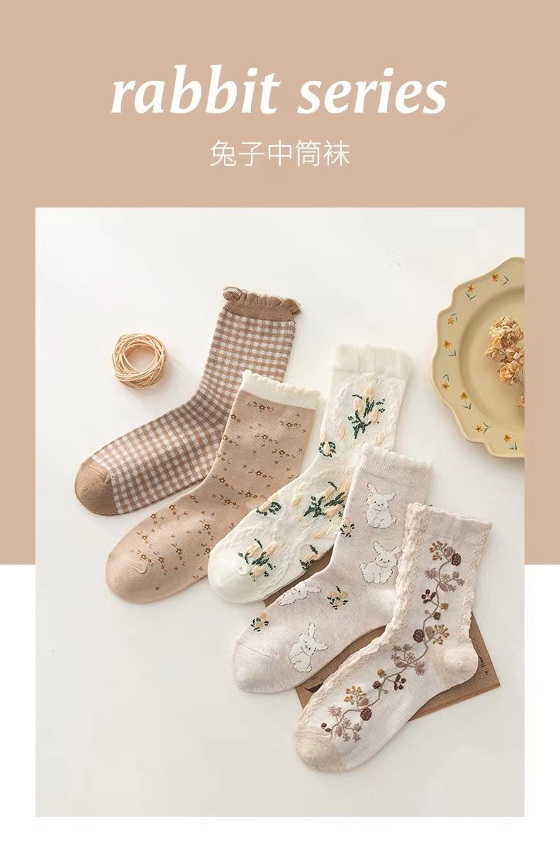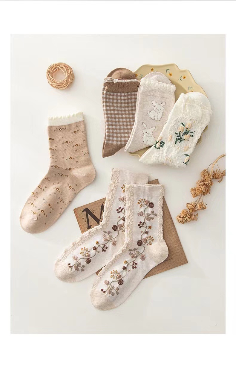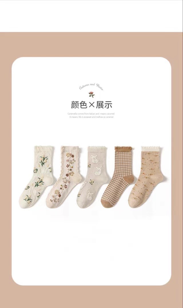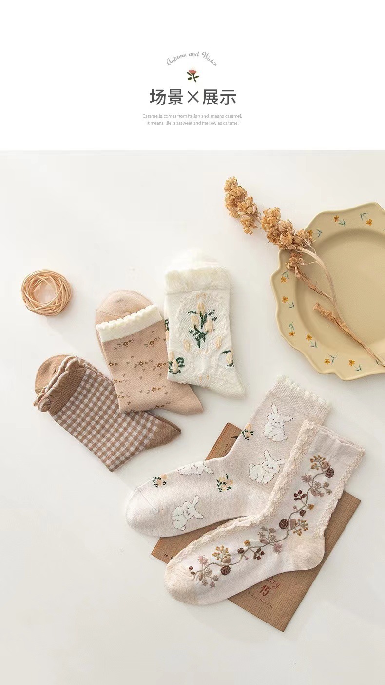진한 베이지 마키아토 양말 여성의 봄과 가을 패션 미드 튜브 양말 가을과 겨울 귀여운 만화 여성 양말 일본과 한국 스타일 여성 양말스토어 가기