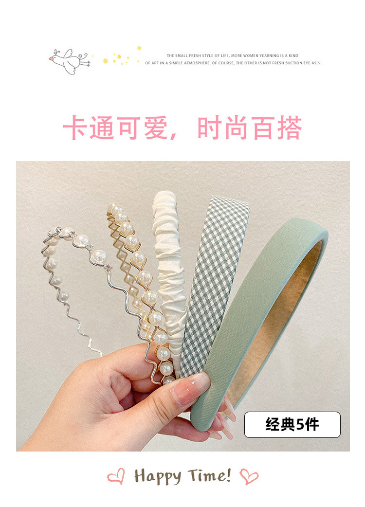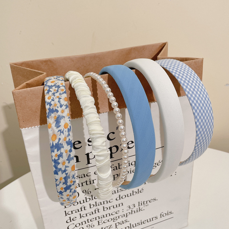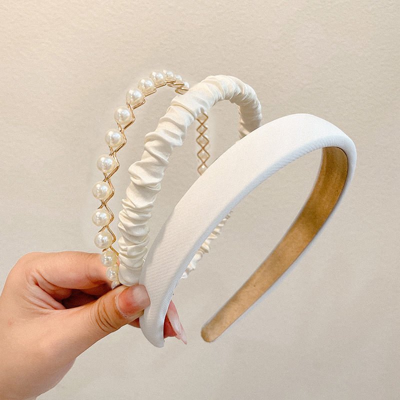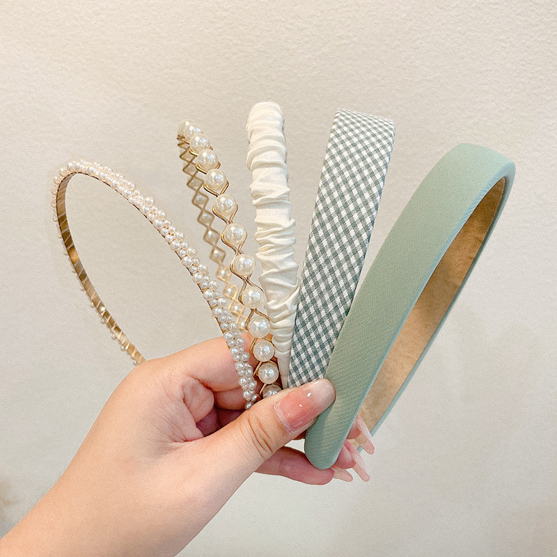 스폰지 헤어 밴드 여성 여름 올 매치 외출 패브릭 헤어핀 세트 펄 헤드웨어 헤어 번들 워시 헤어 프레스 헤드 밴드