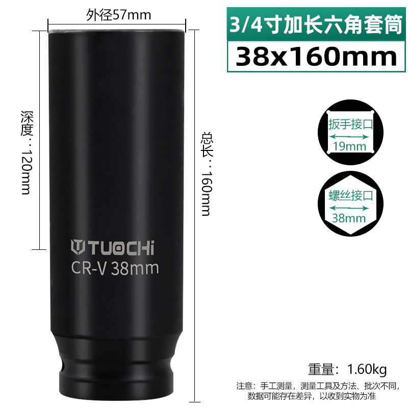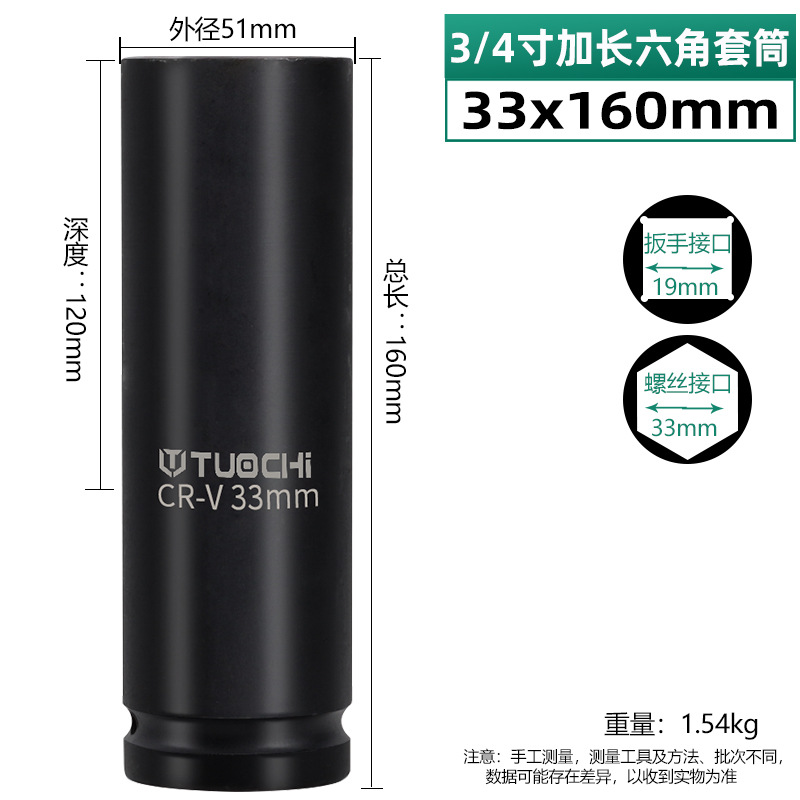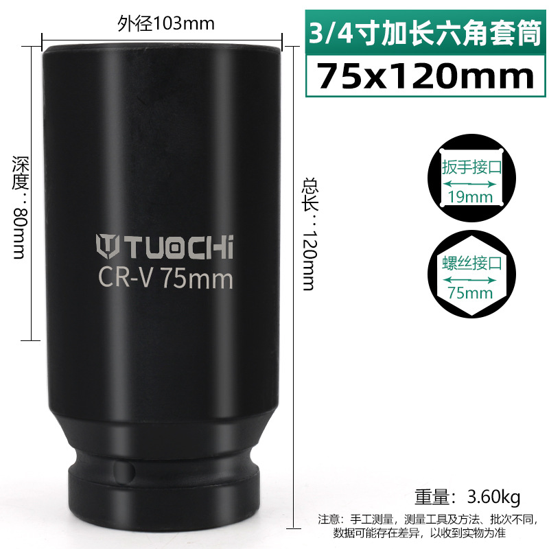3/4 인치 공압 렌치 중형 공기총 중형 연장 슬리브 헤드 6 육각형 두꺼운 강화 슬리브 공기총 슬리브스토어 가기