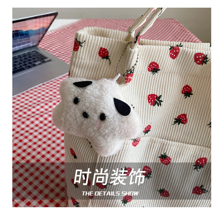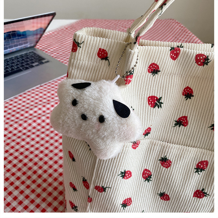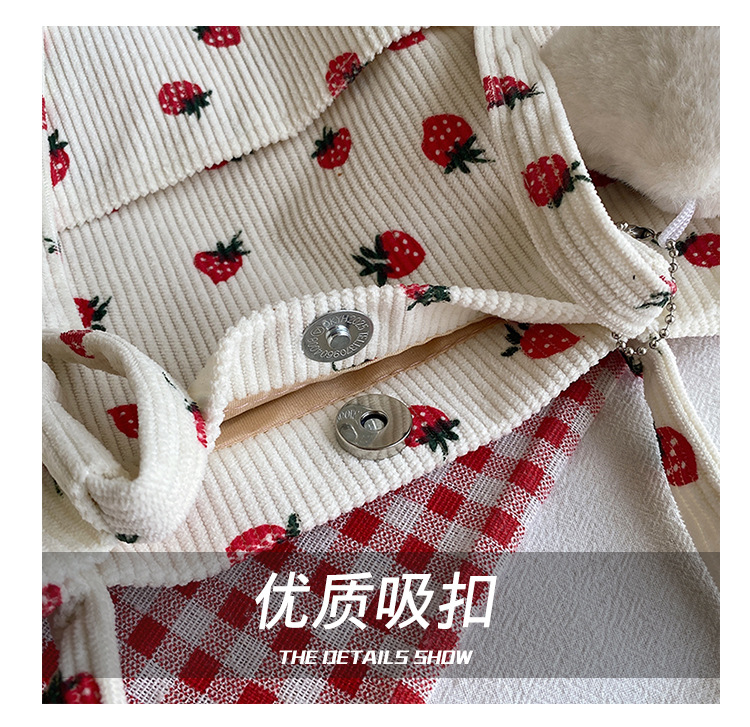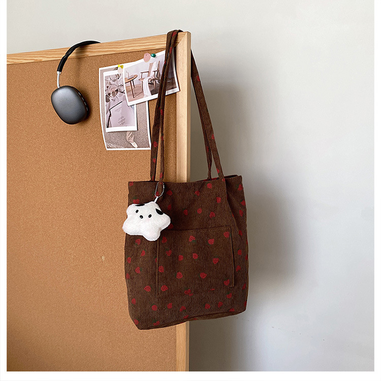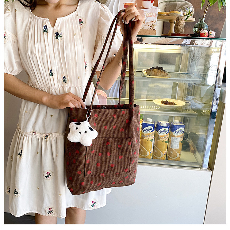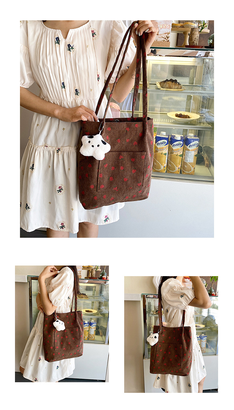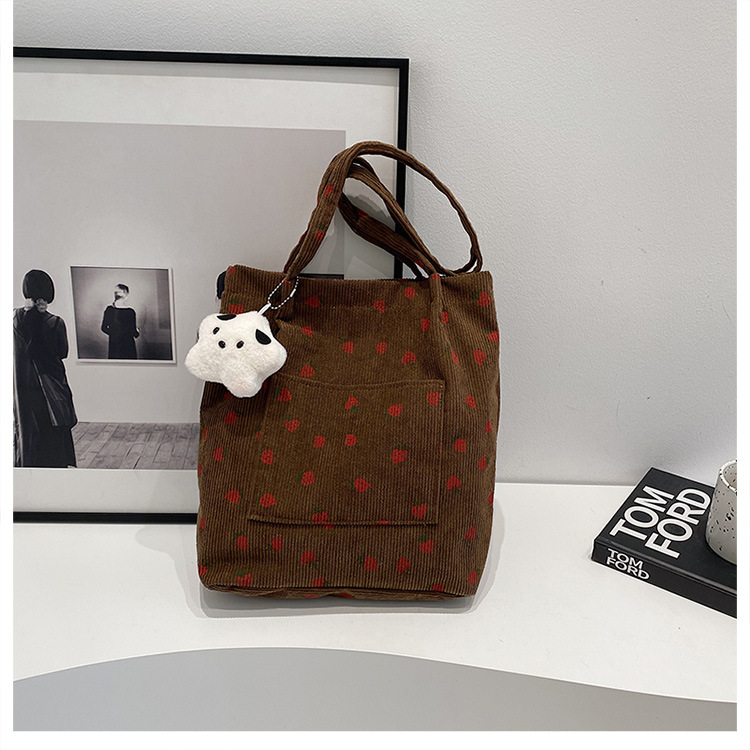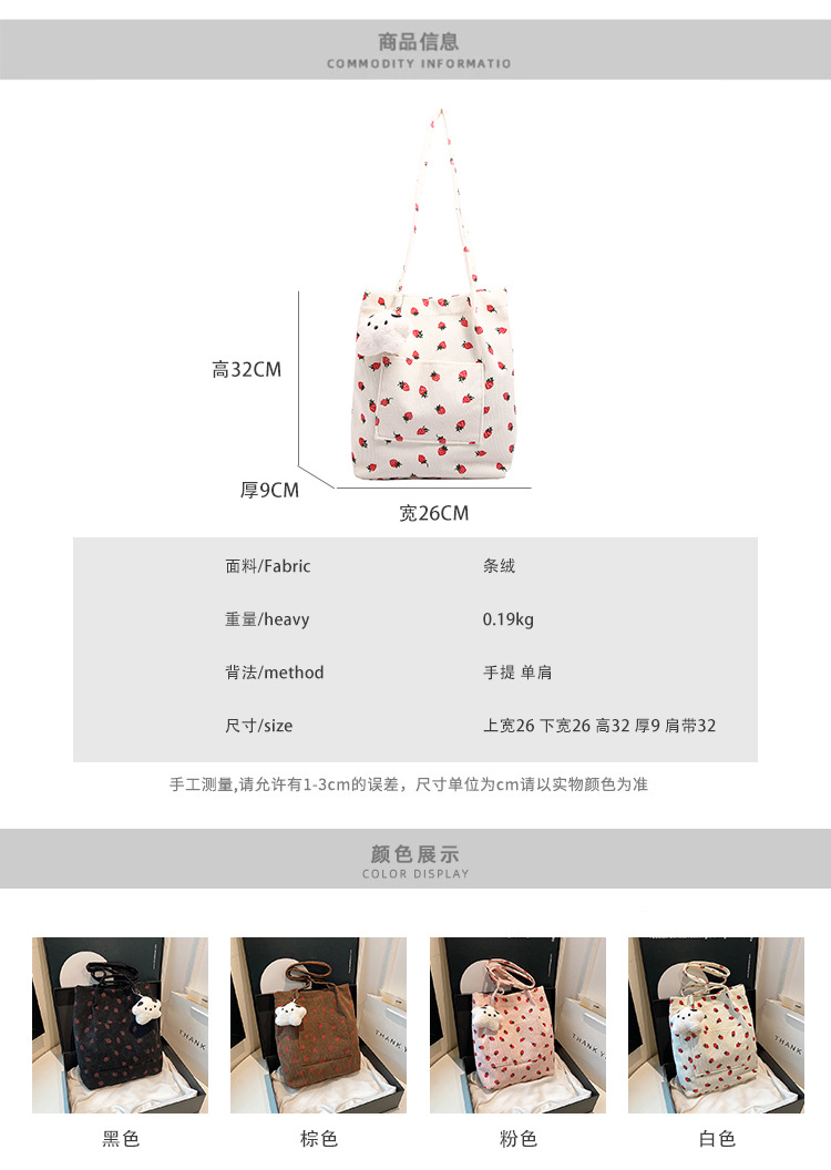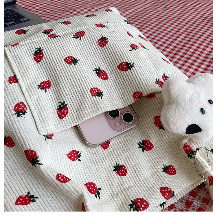 대용량 패션 코듀로이 여성용 어깨 가방 2024 새로운 딸기 인쇄 토트 백 유행 학생 배낭스토어 가기