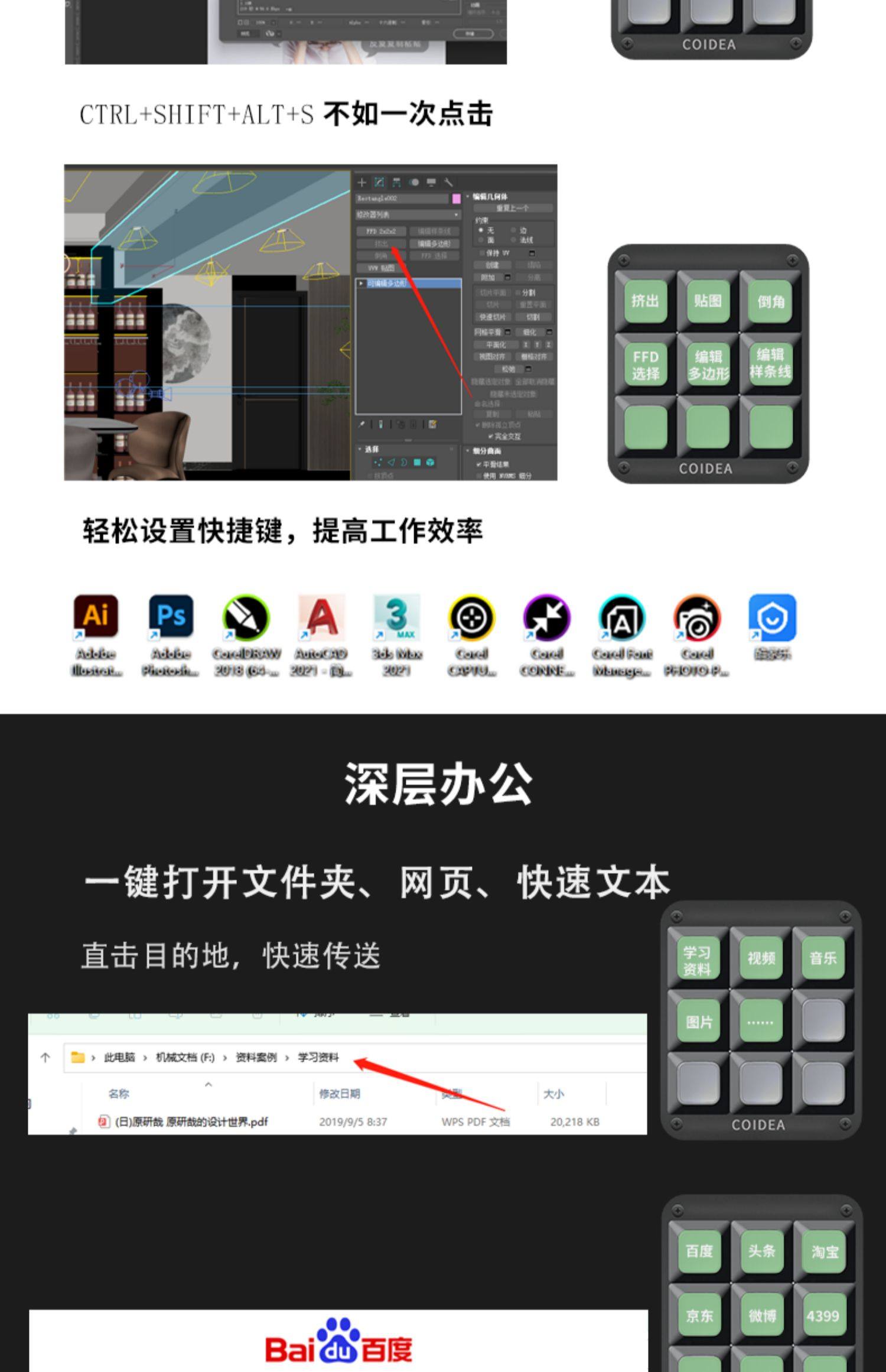 COIDEA 사용자 지정 키패드 무선 블루투스 키보드 프로그래밍 전자 책 페이지 한 키 암호 복사 qingying스토어 가기