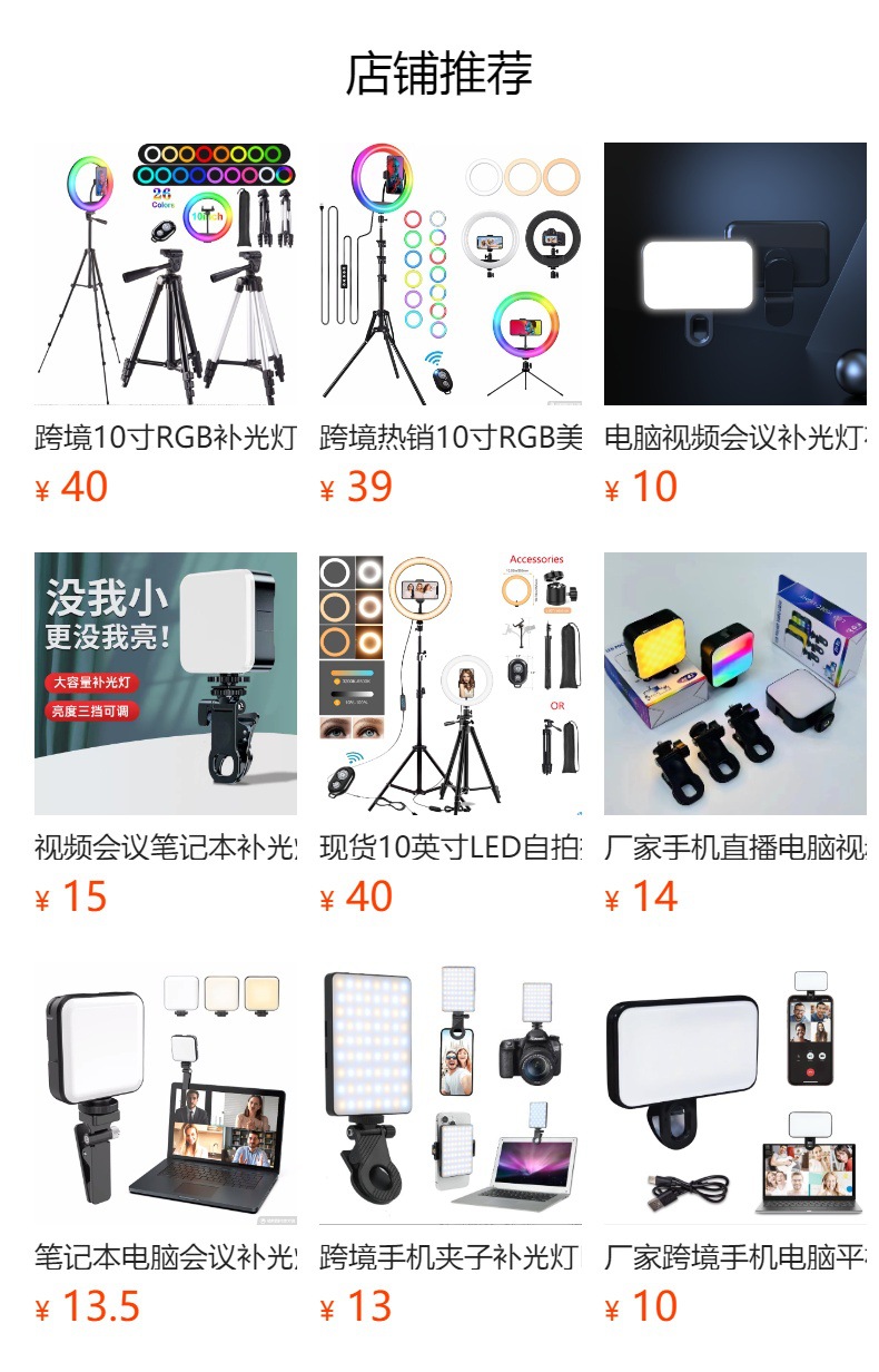 국경 간 LED 셀카 조명 휴대 전화 3 색 채우기 가벼운 채터 Vlog 화상 회의 충전 휴대용 비디오 조명 재고스토어 가기