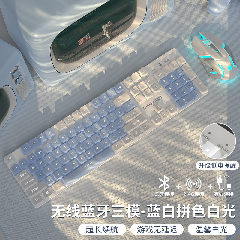 • 차축 Qingying Office 코드 문자 Qingying Qingying 파란색과 흰색 - 백색광 104 키 + 무선 게임용 마우스 Qingying 무선 Bluetooth 유선 - 3가지 모드 Qingying Qingying Qingying No