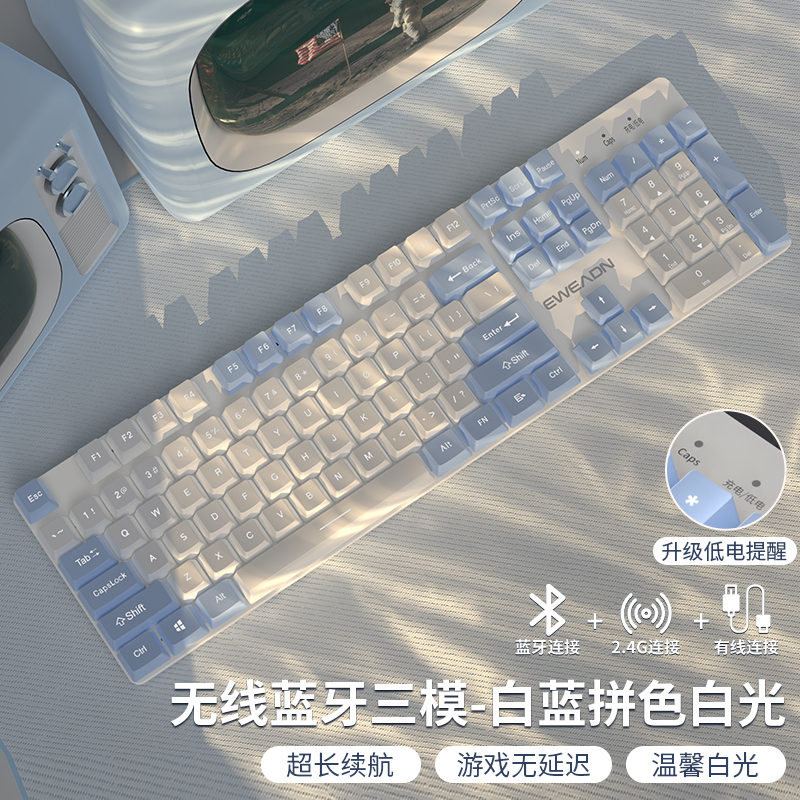 • 차축 Qingying Office 코드 문자 Qingying Qingying 파란색과 흰색 - 백색광 104 키 Qingying 무선 Bluetooth 유선 - 세 가지 모드 Qingying Qingying Qingying No