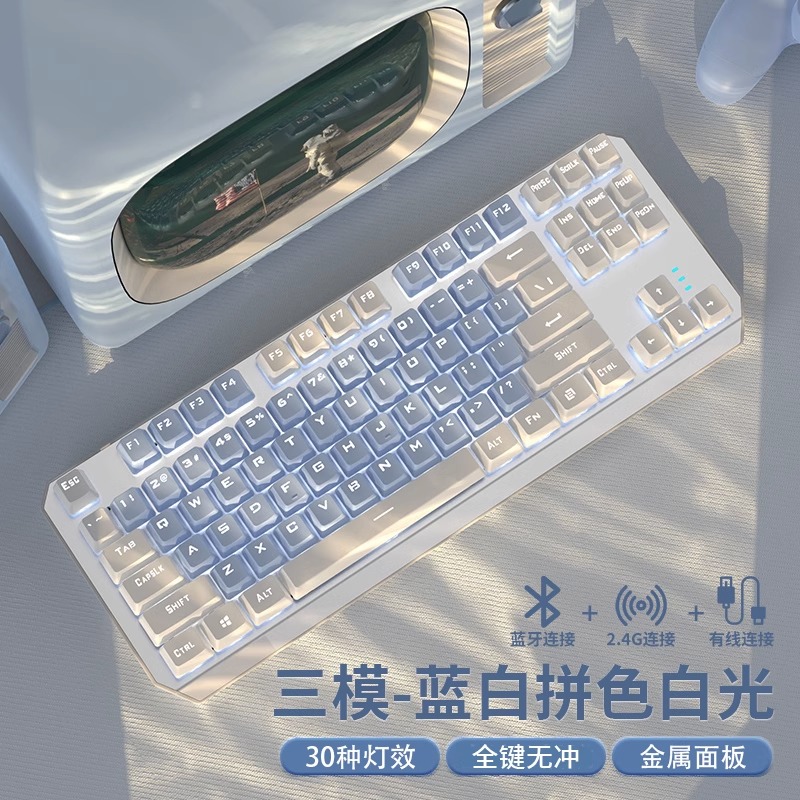 • 차축 Qingying Office 코드 문자 Qingying Qingying 흰색 및 파란색 - 백색광 87 키 Qingying 무선 Bluetooth 유선 - 세 가지 모드 Qingying Qingying No