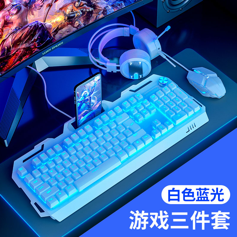 전자 스포츠 게임을위한 기계 느낌 키보드 마우스 헤드셋 3 조각 세트 고가 노트북 책상
