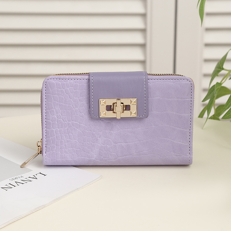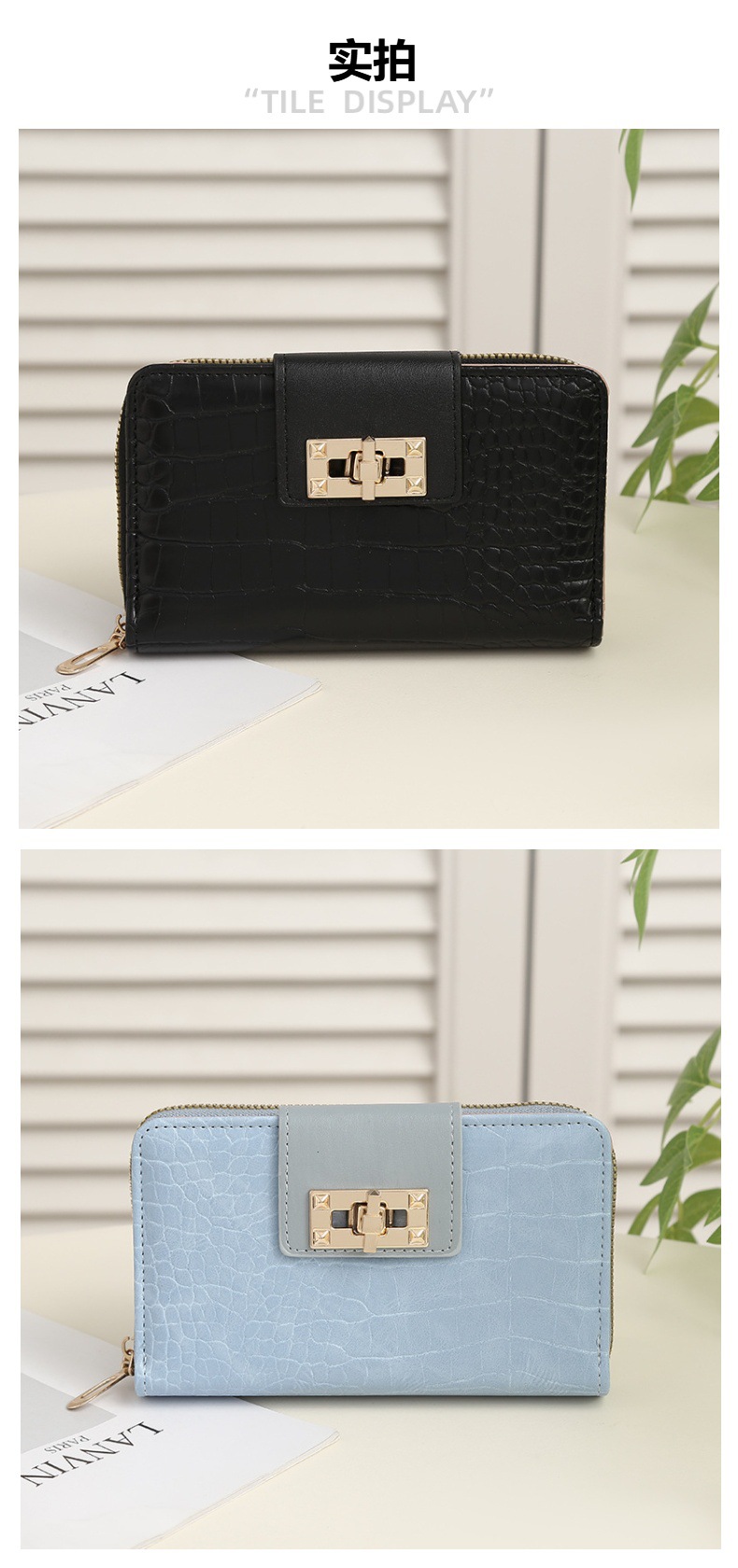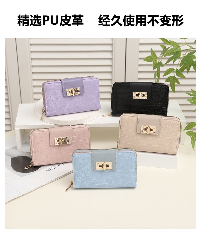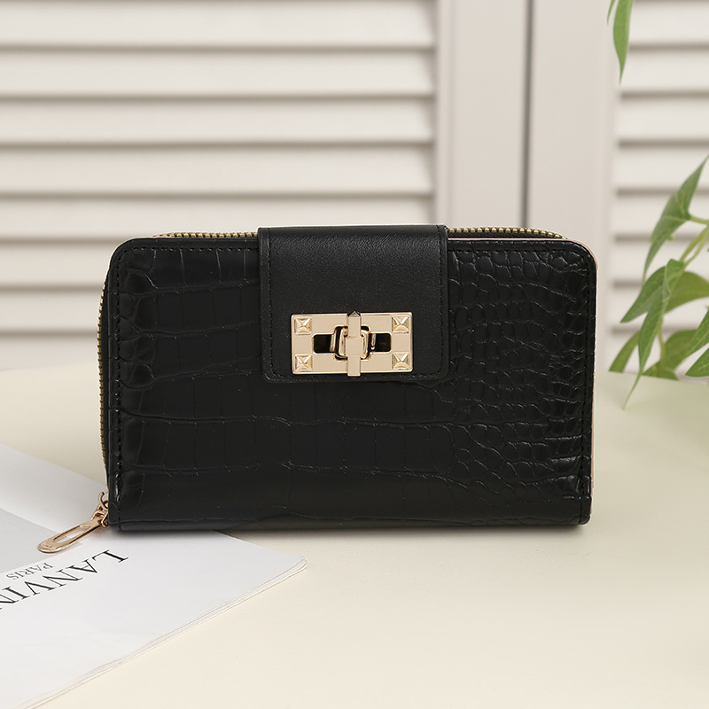 아마존 새로운 돌 패턴 여성 변경 클립 PU 가죽 멀티 카드 긴 지갑 잠금 버클 지갑 도매스토어 가기