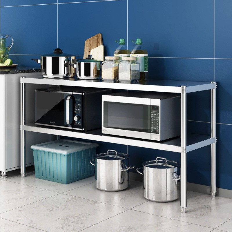 더블 레이어 바닥 스탠딩 스테인레스 스틸 주방 랙 전기 어플라이언스 스토리지 랙 가정용 다층 스토리지 랙 코너 랙