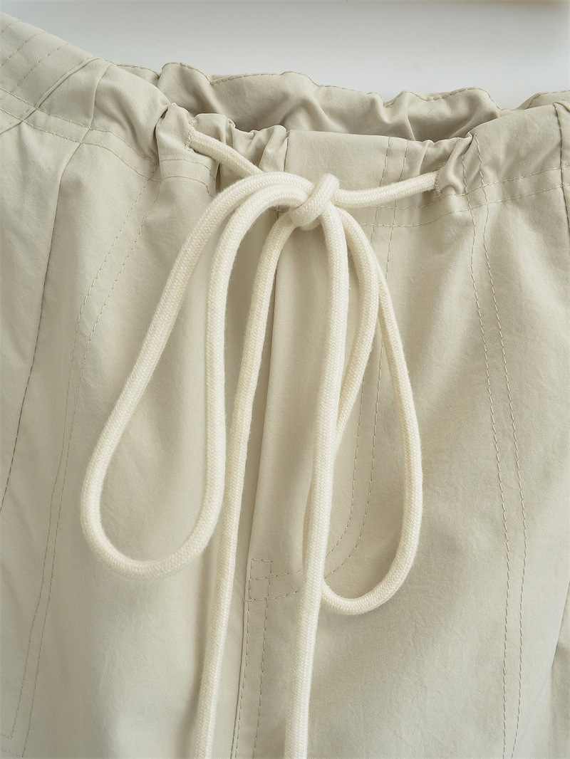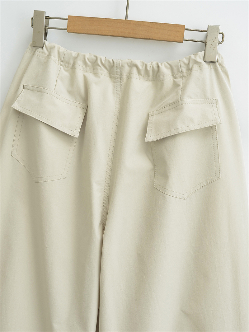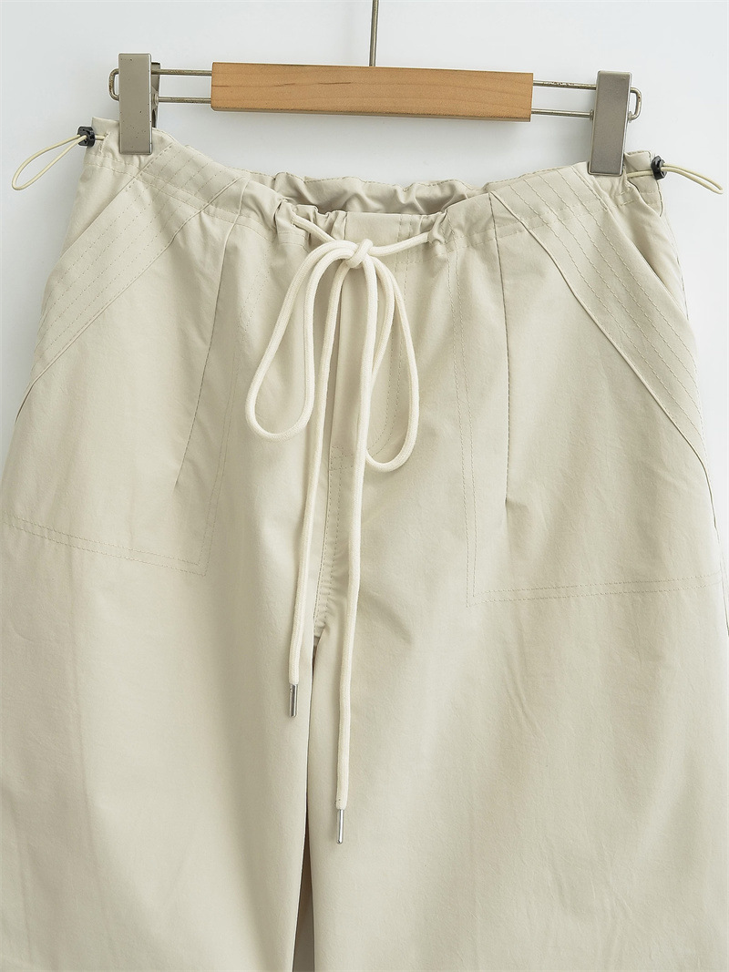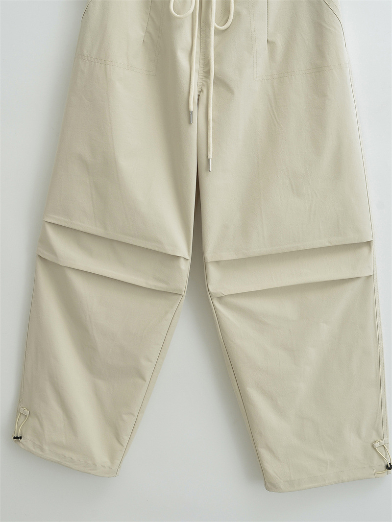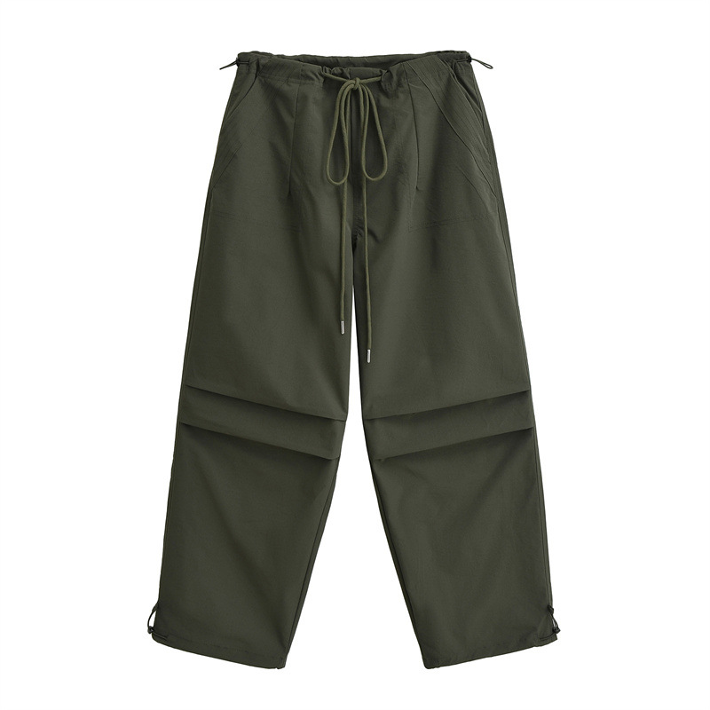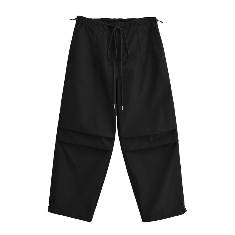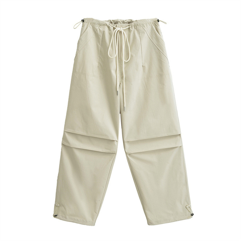 아메리칸 스타일 레트로 핫 소녀 느슨한 낮은 허리 크록 바지 여성의 봄과 여름 캐주얼 드로우 스트링 넓은 다리 바지 낙하산 충전 바지