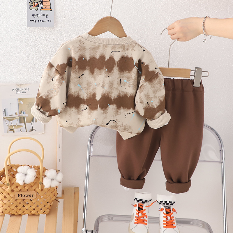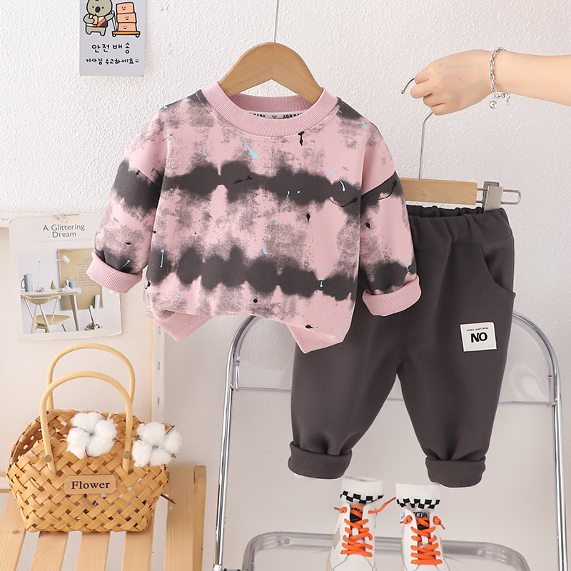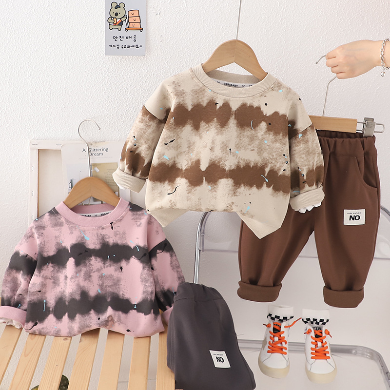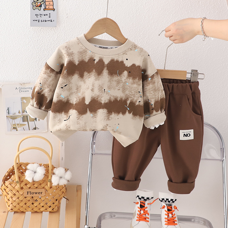 남자들의 봄 세트 한국 스타일 새로운 어린이 봄과 가을 패션 캐주얼 염료 스트라이프 긴 소매 투피스 유행 쿨스토어 가기