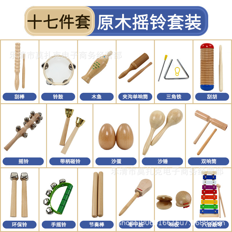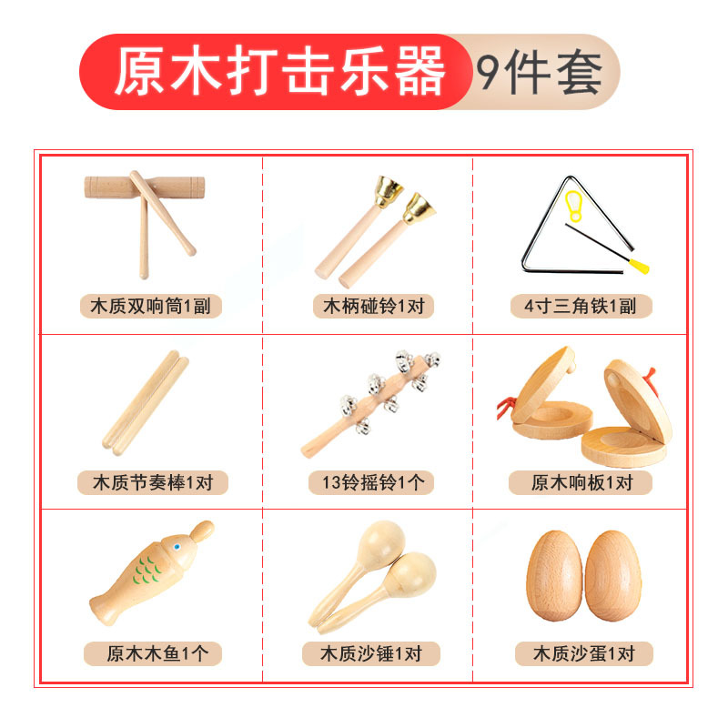 오르프 퍼커션 로그 세트 가르치는 에이즈 터치 우드 피쉬 사운딩 보드 샌드 해머 에그 손목 탬버린 트라이앵글 더블 링스토어 가기