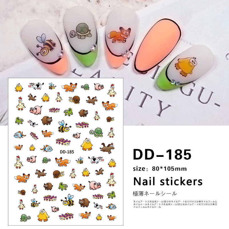 Redanco 새로운 3D 폭발 만화 귀여운 작은 거북이 네일 스티커 접착제 네일 스티커 도매