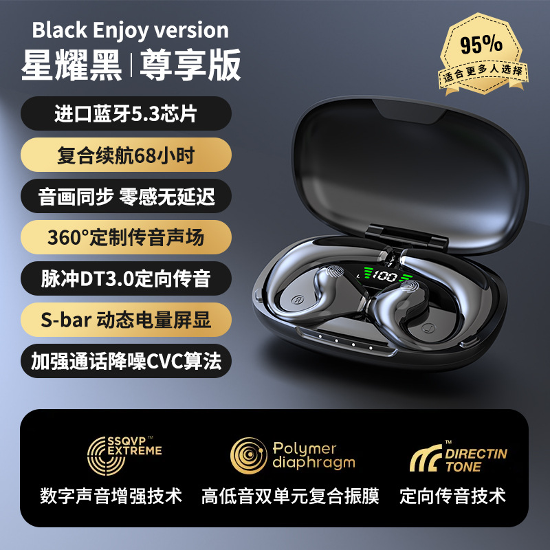 • Black Qingying 200시간의 긴 배터리 수명 + 통증 없는 착용 및 비인이어 + HIFI 음질 + 고화질
