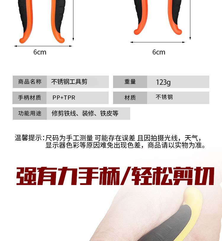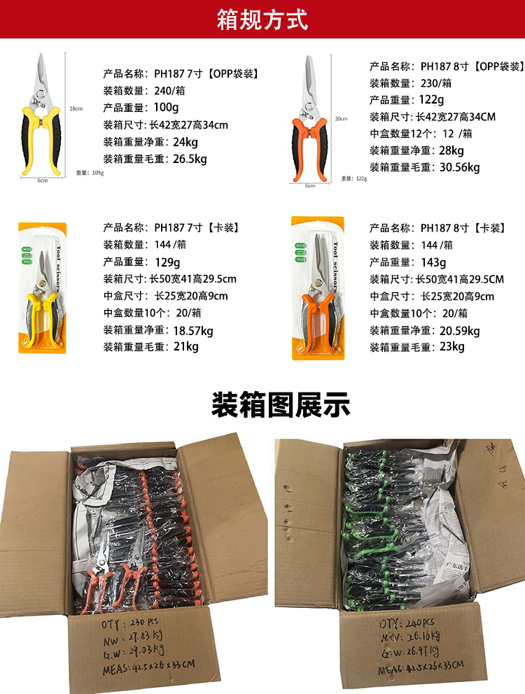 • PH187 7inch 오렌지 샌드블라스팅 공구 가위 [카드 포장] * 스테인리스 스틸