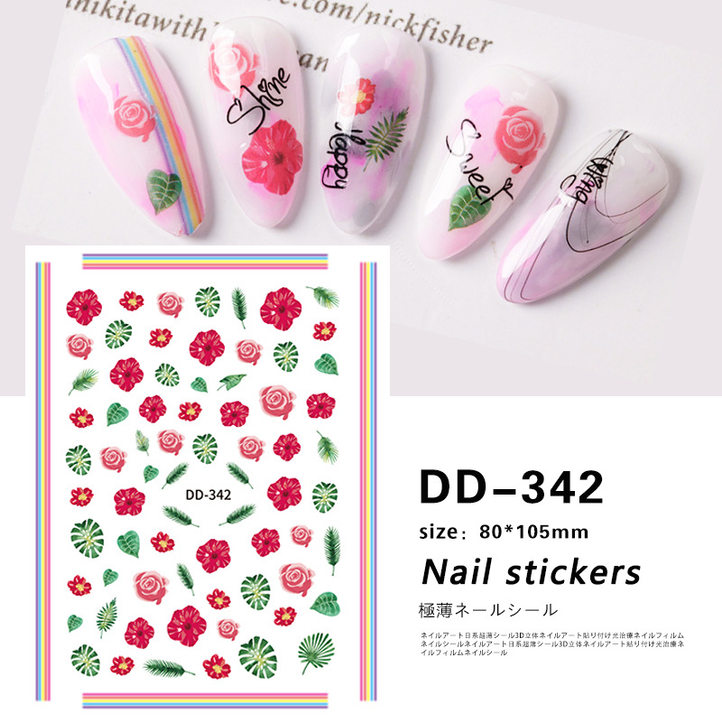 Redanco 새로운 3D 그물 붉은 폭발 작은 야생 꽃 네일 아트 스티커 접착 네일 스티커 보석 도매 DD-318스토어 가기