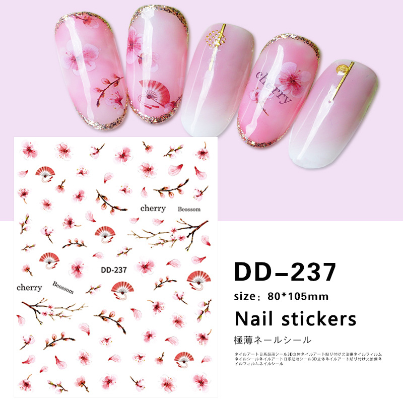 Redanco 새로운 3D 그물 레드 인기있는 매화 네일 아트 스티커 접착 네일 스티커 도매 DD-221스토어 가기