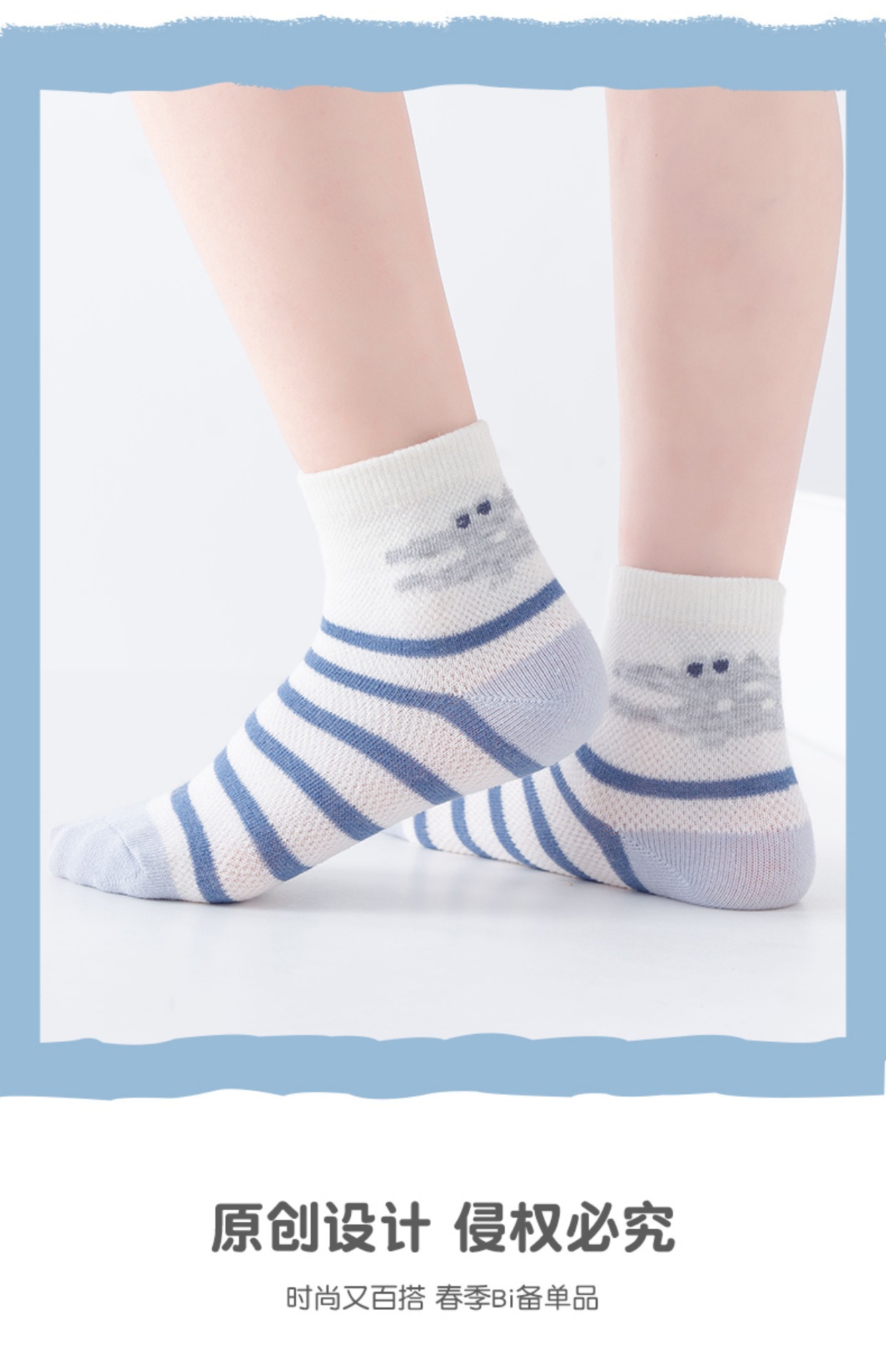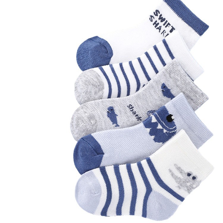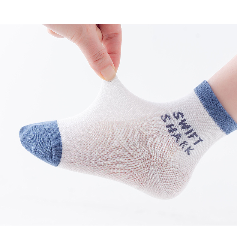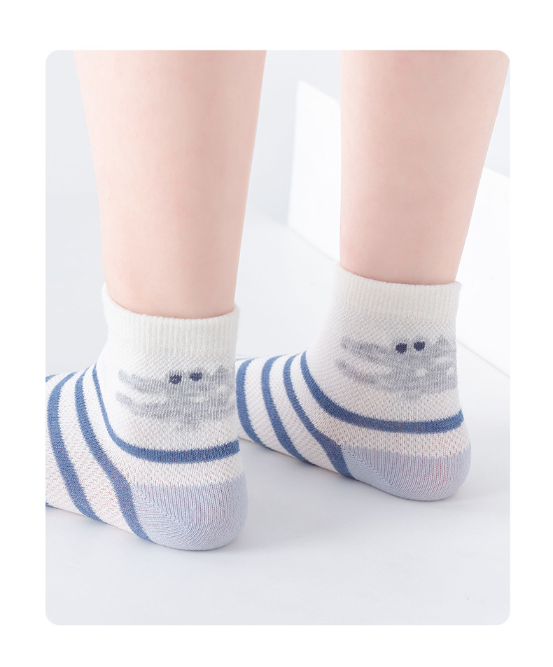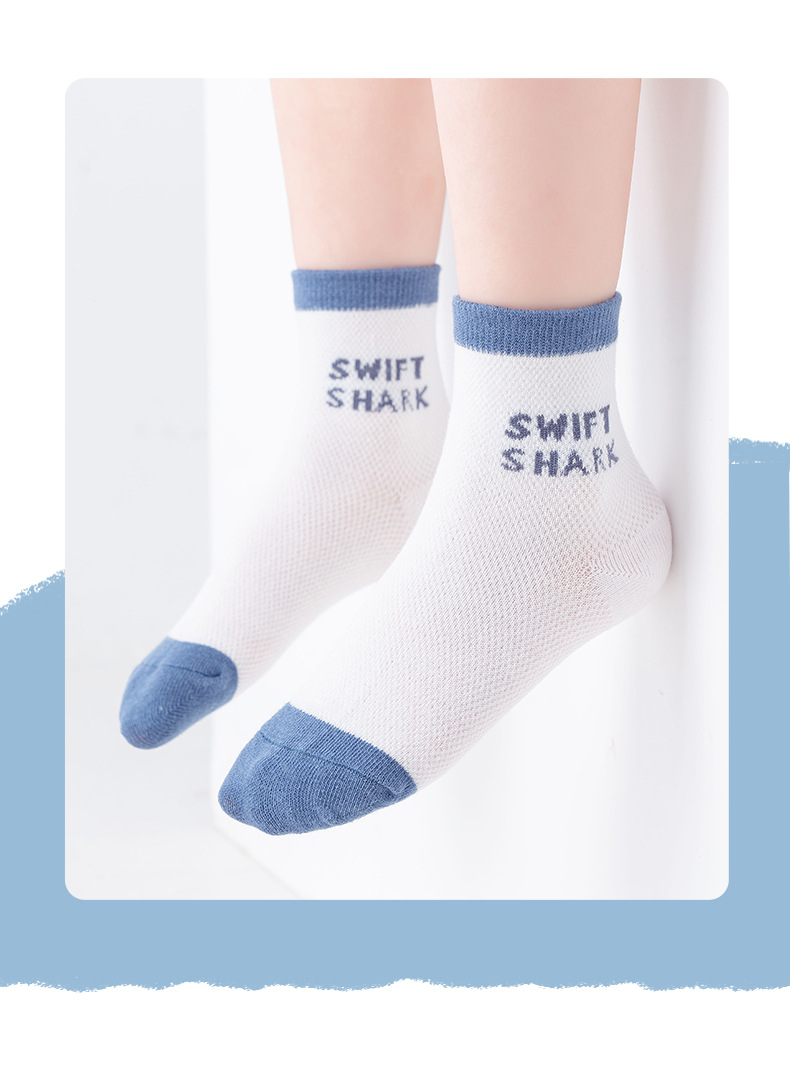어린이 양말, 남아용 순면 만화 상어 중목 양말, 순면 아기용 짧은 메쉬 양말, 중소형 어린이 남아용