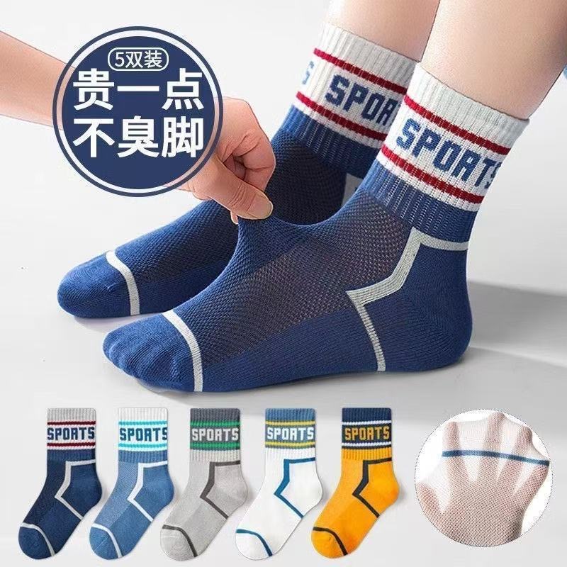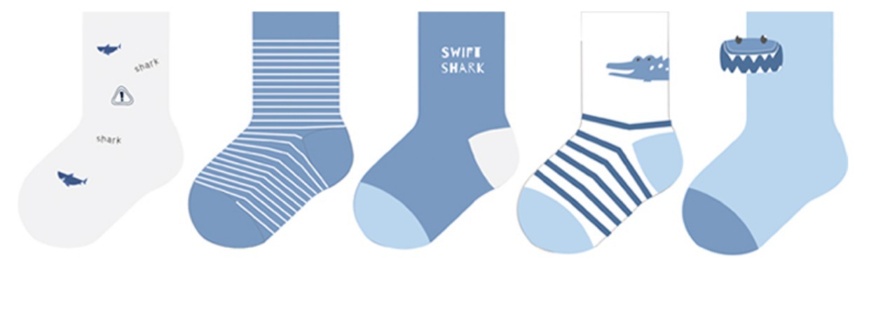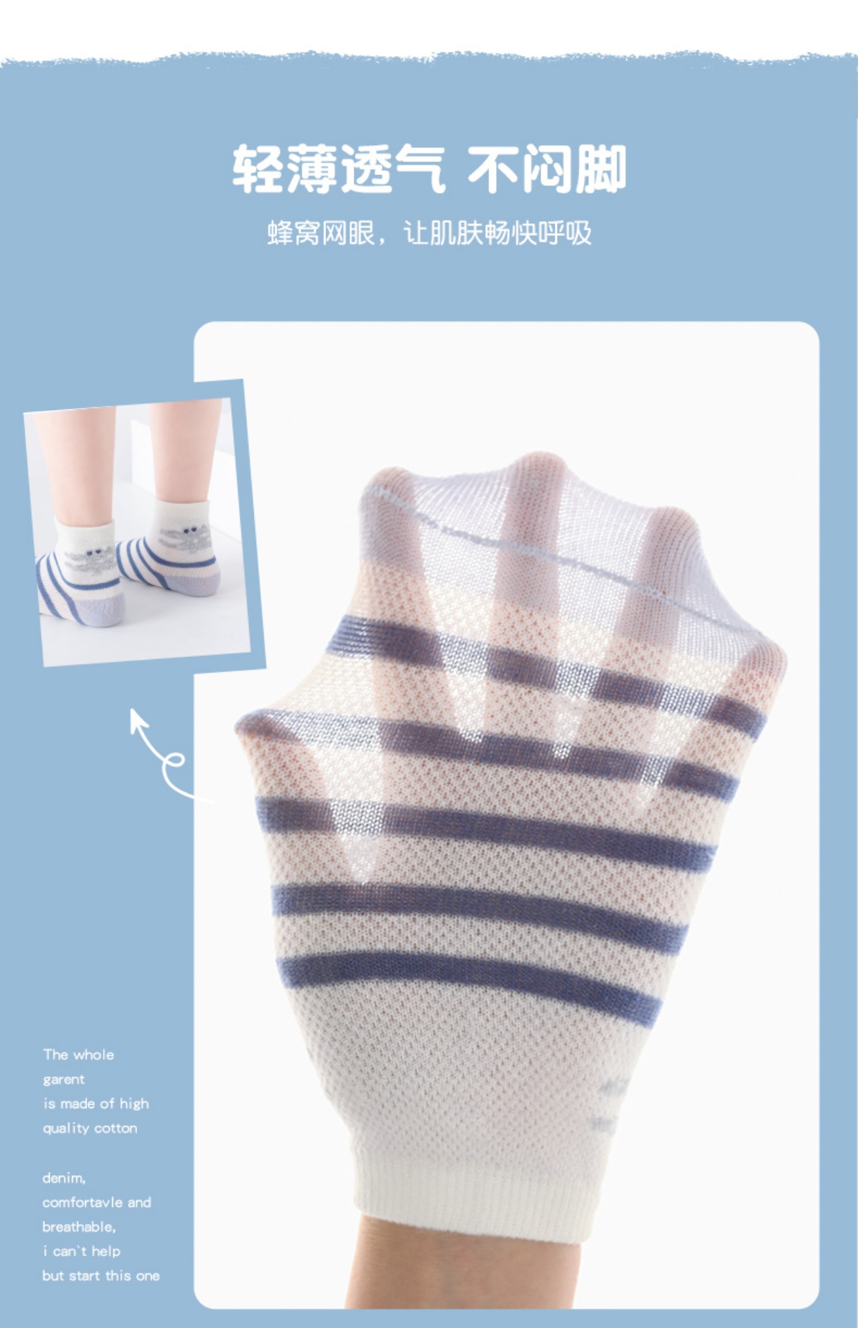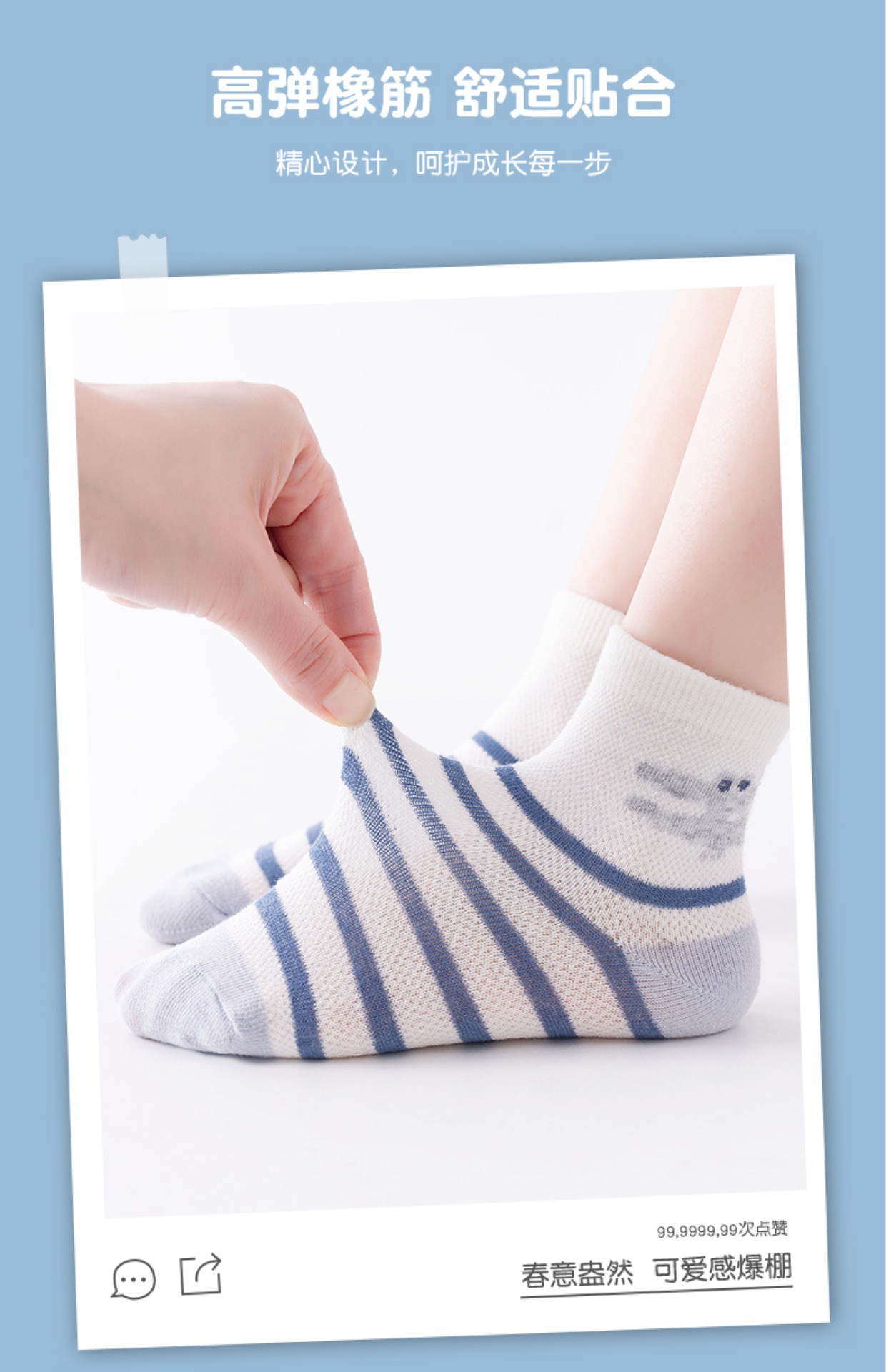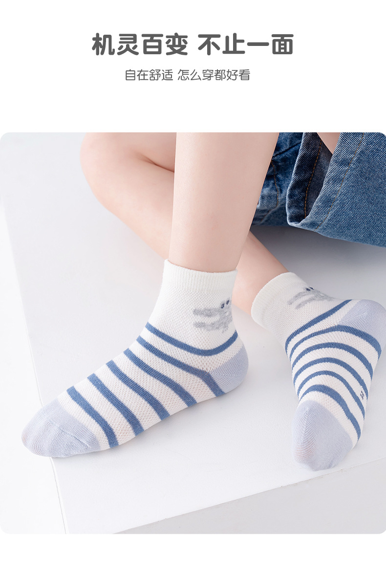 어린이 양말, 남아용 순면 만화 상어 중목 양말, 순면 아기용 짧은 메쉬 양말, 중소형 어린이 남아용