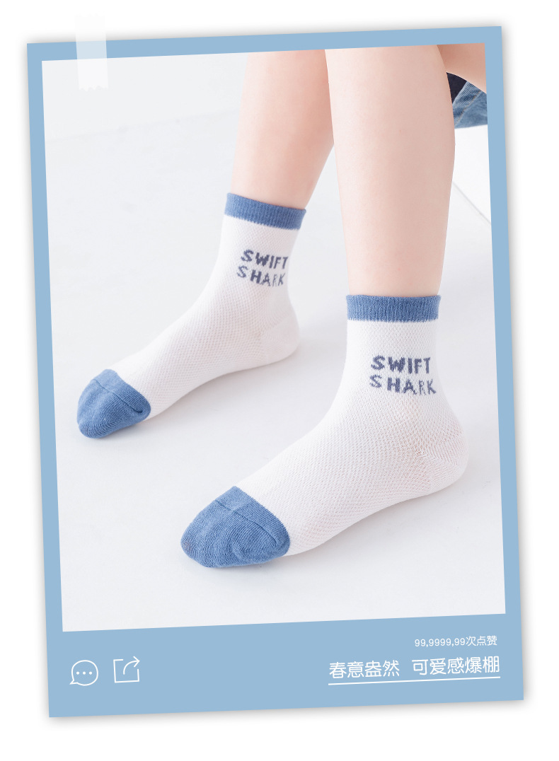 어린이 양말, 남아용 순면 만화 상어 중목 양말, 순면 아기용 짧은 메쉬 양말, 중소형 어린이 남아용스토어 가기