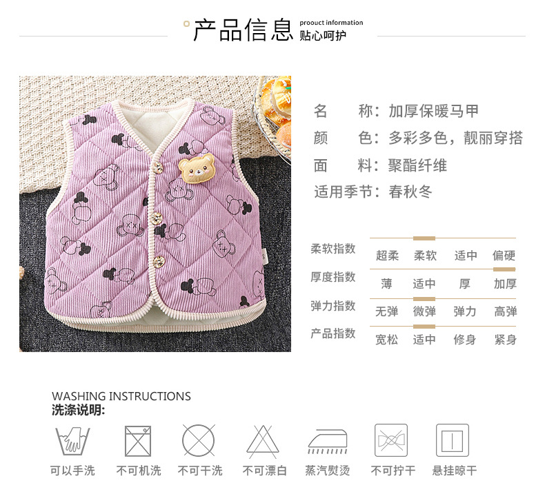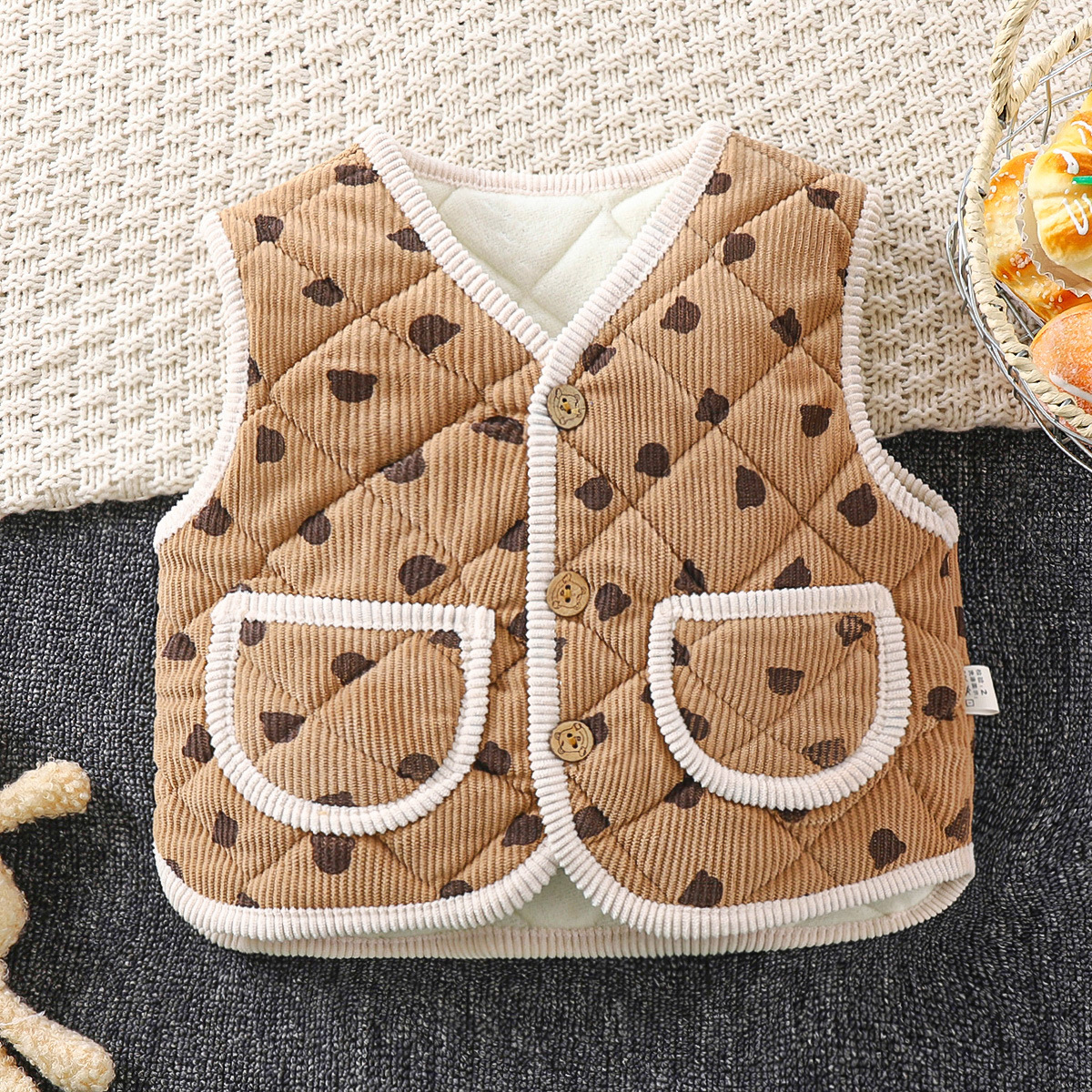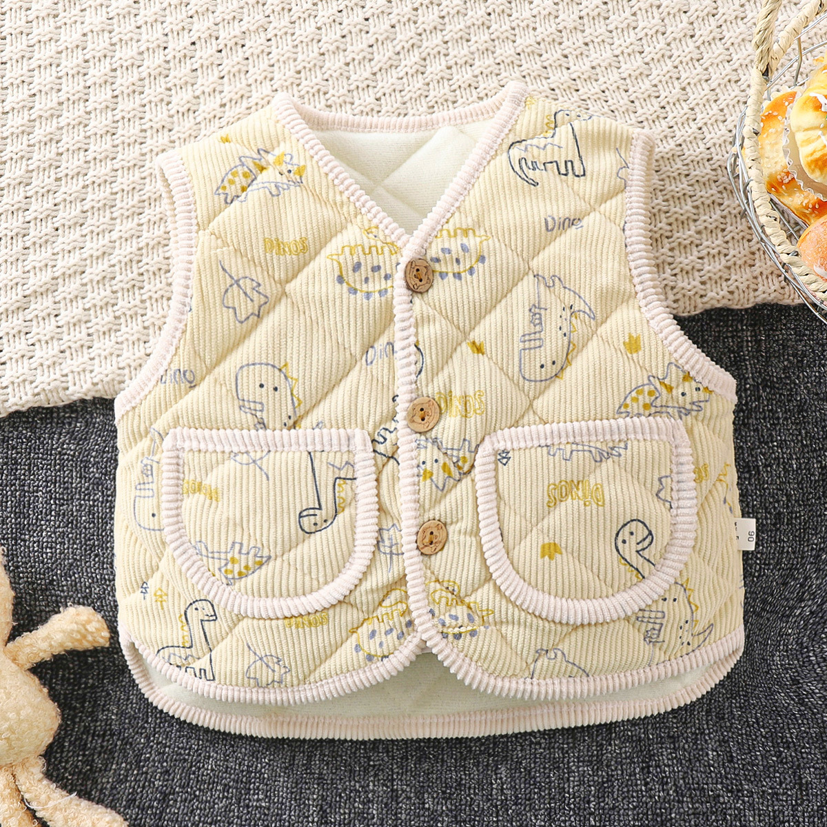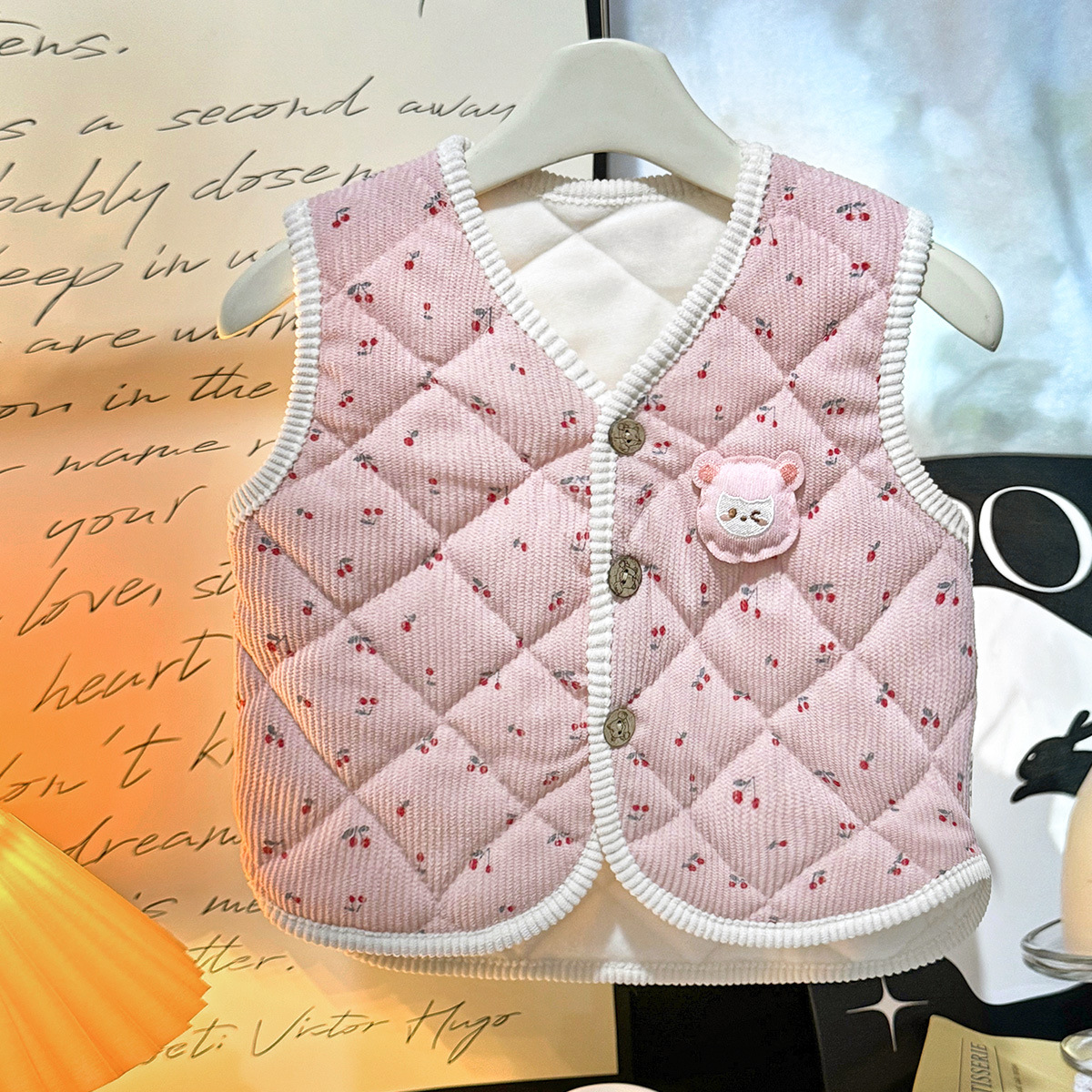 가을 겨울 신상 유아용 민소매 누빔 조끼 플러스 벨벳 및 면 안감 조끼 아동복 도매
