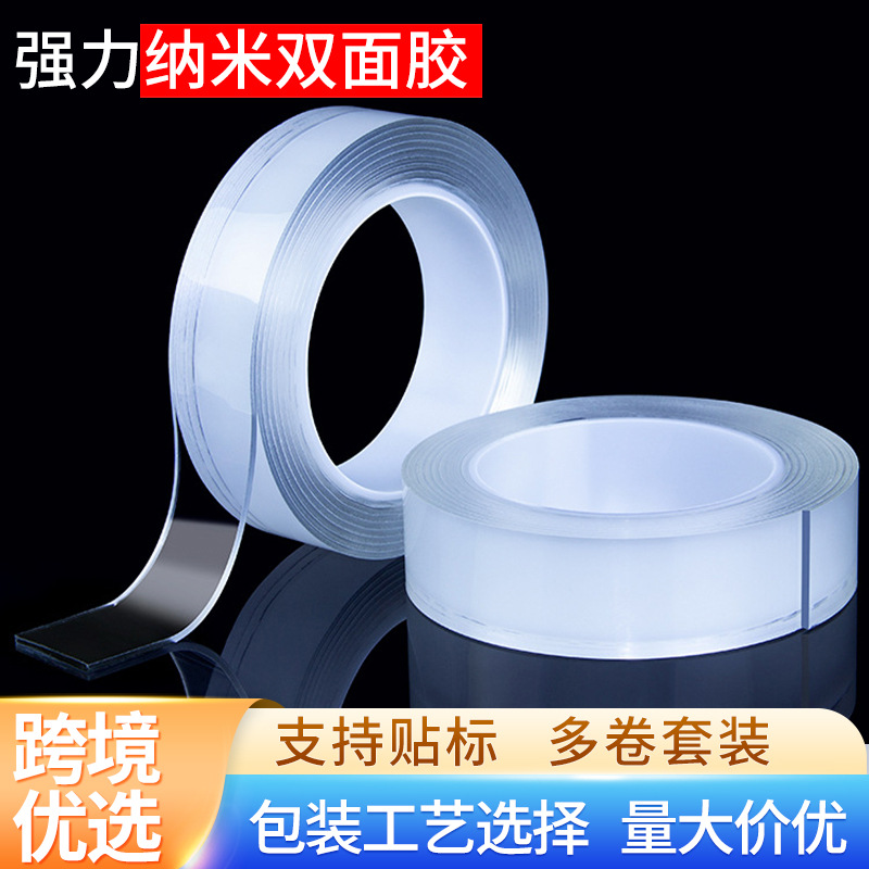 批发跨境纳米双面胶高粘度无痕挂钩胶亚克力透明魔力防水纳米胶带¥0.4