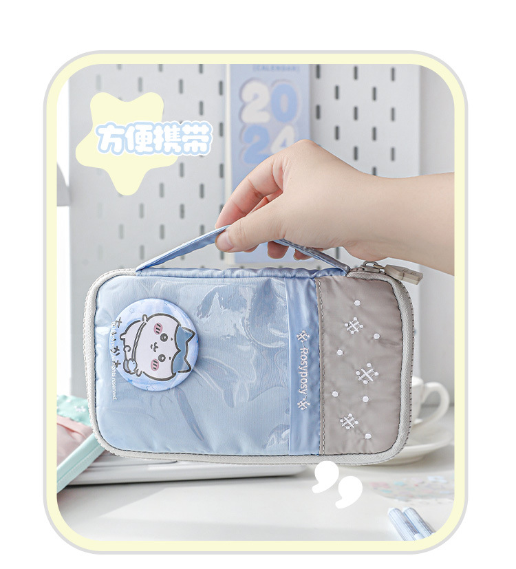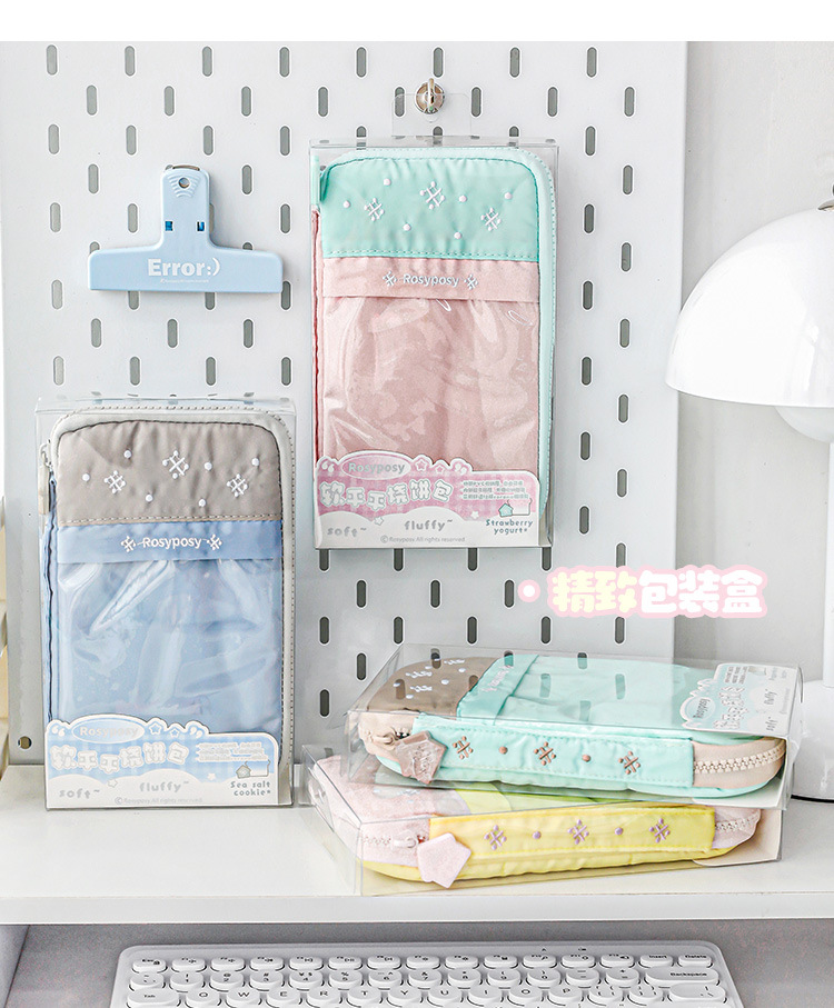 RosyPosy 소프트 세트 소프트 스탠드 업 팬케이크 가방 작은 신선한 대비 컬러 학생 연필 가방 다기능 보관스토어 가기