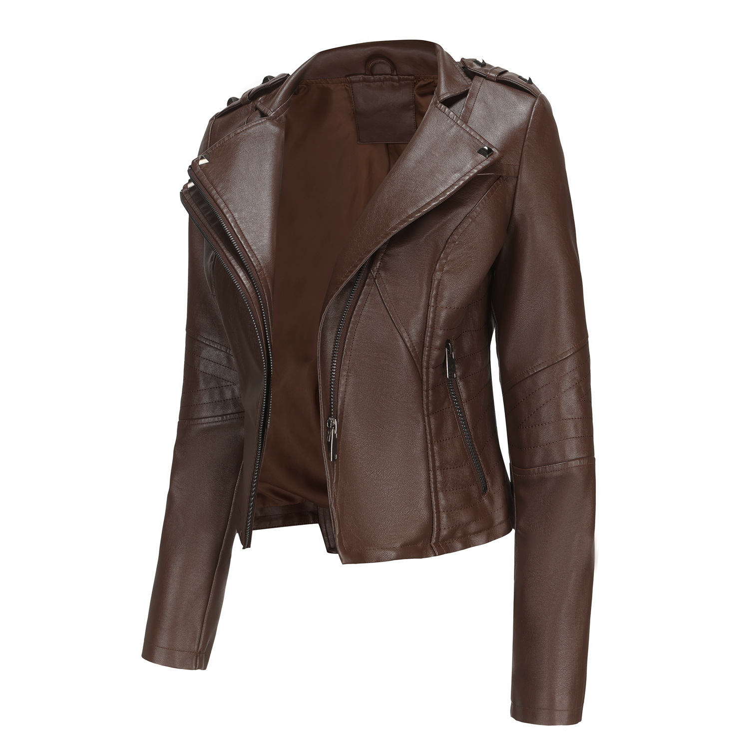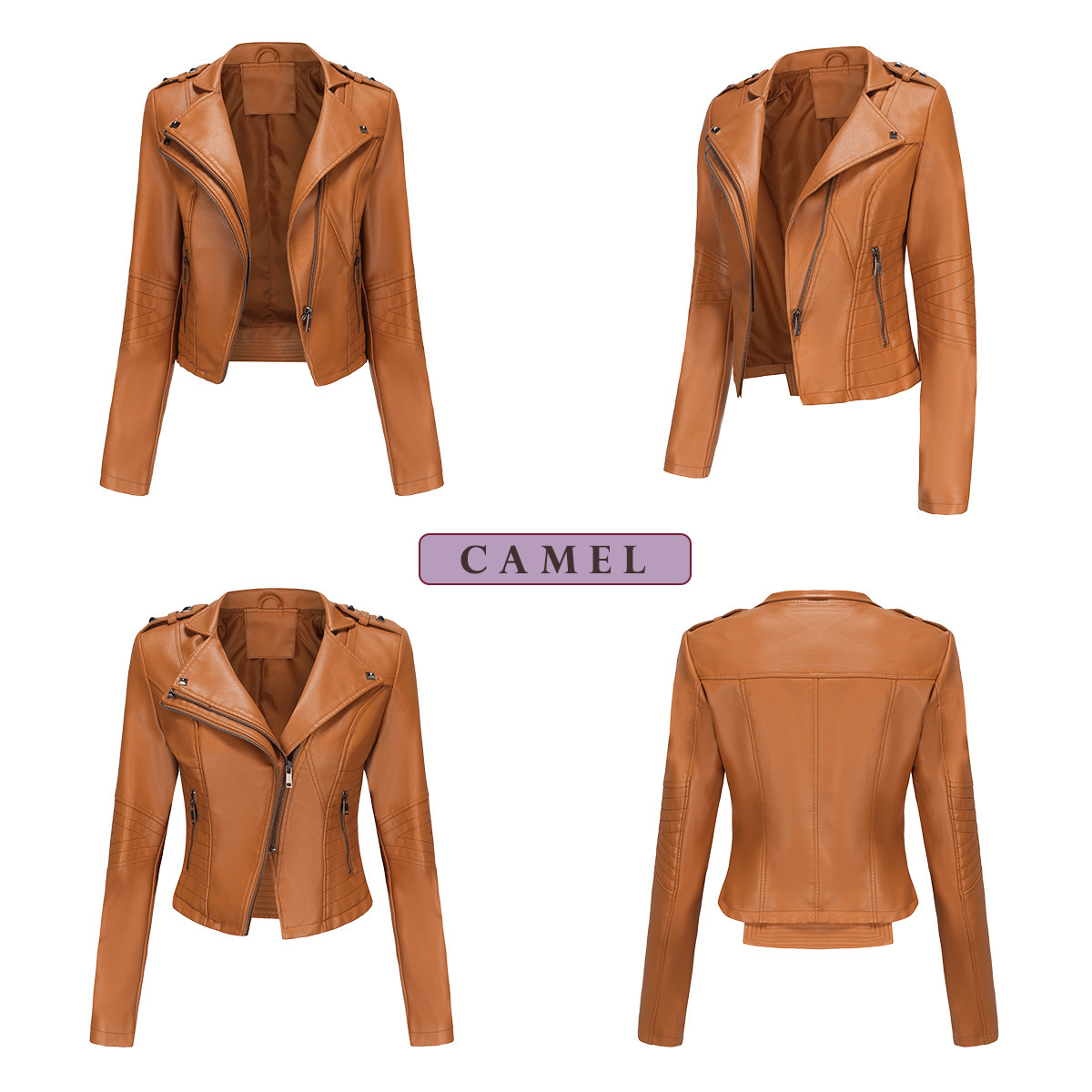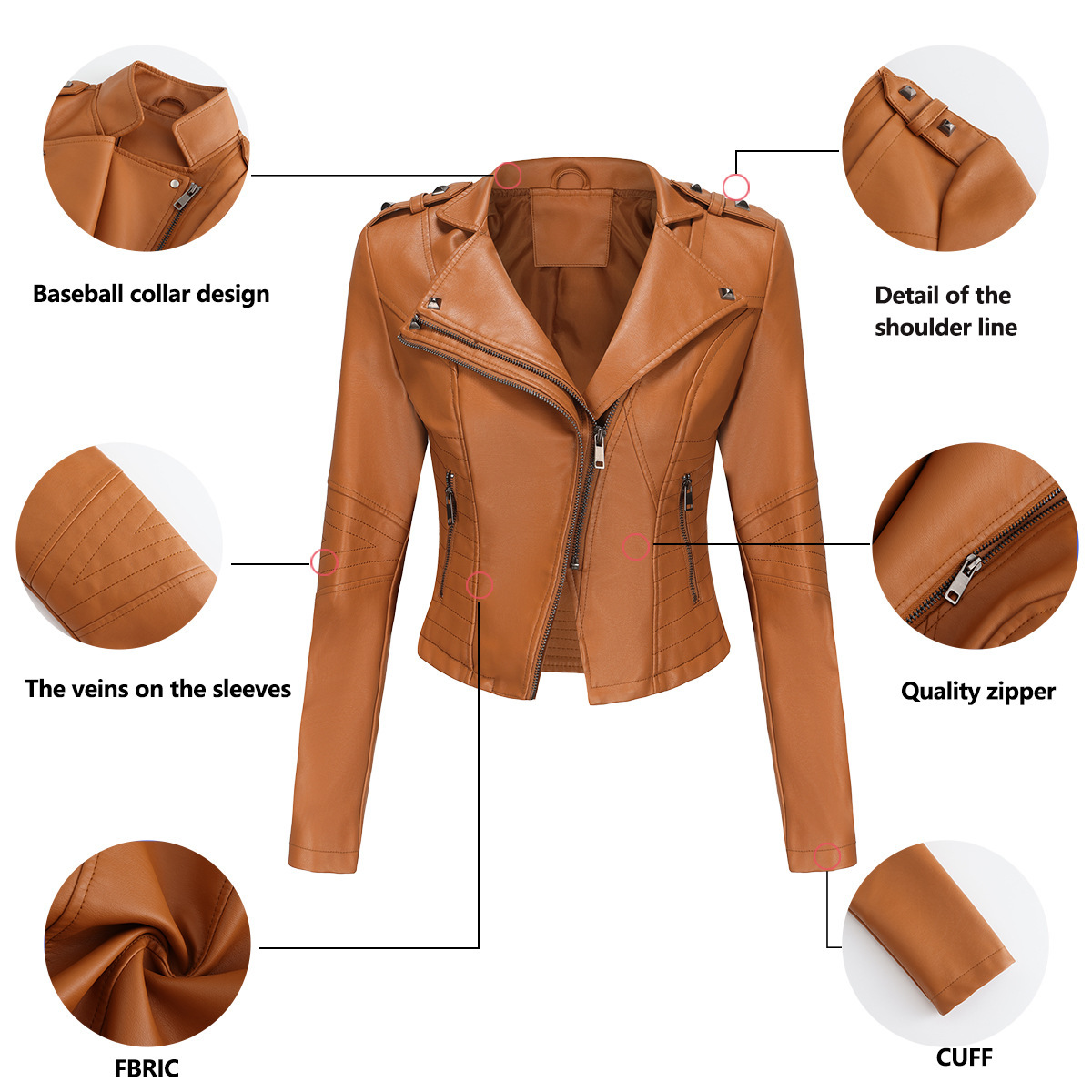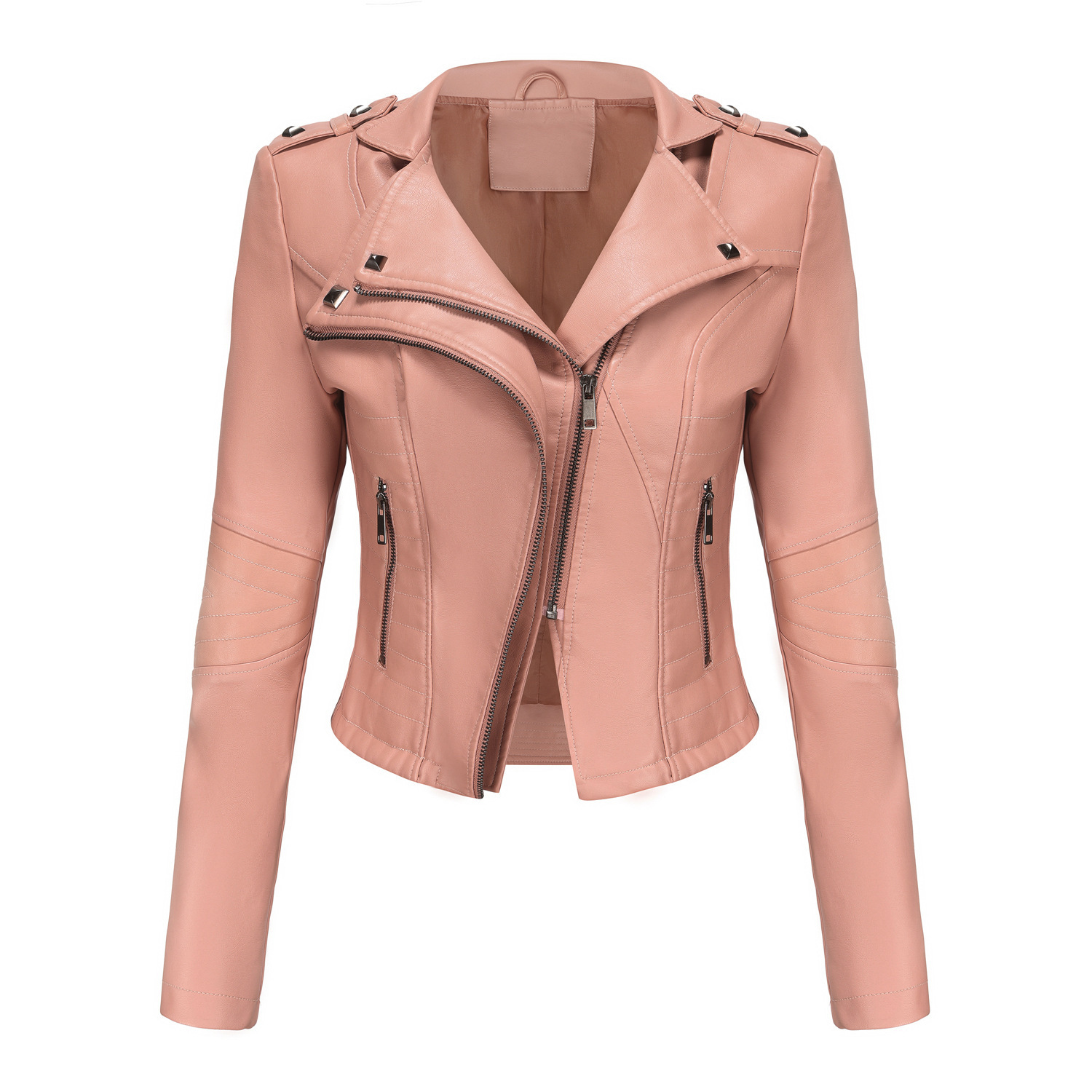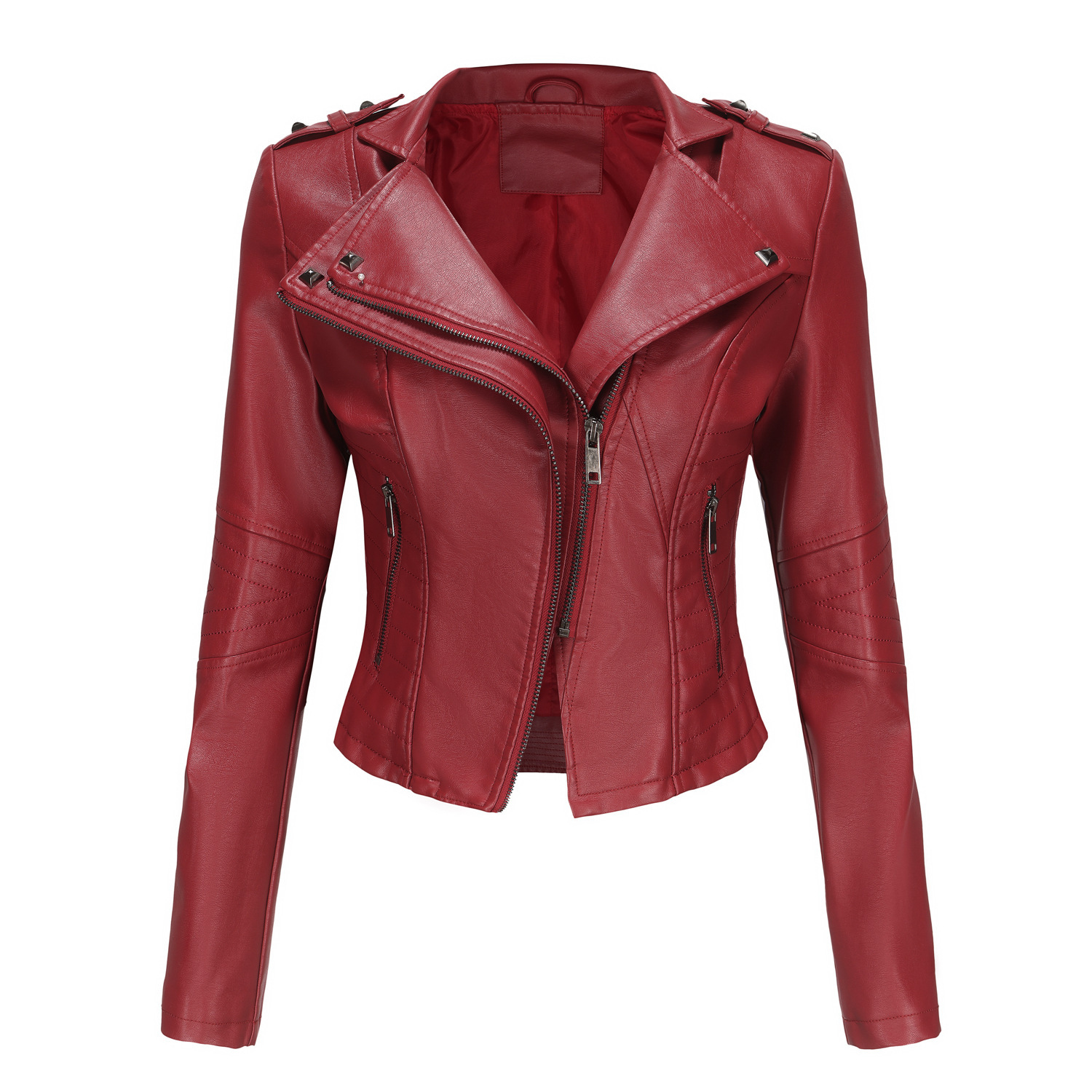 뜨거운 판매 여성 짧은 그림 슬림 뷰티 가죽 자켓 리벳 지퍼 봄과 가을 가죽 자켓