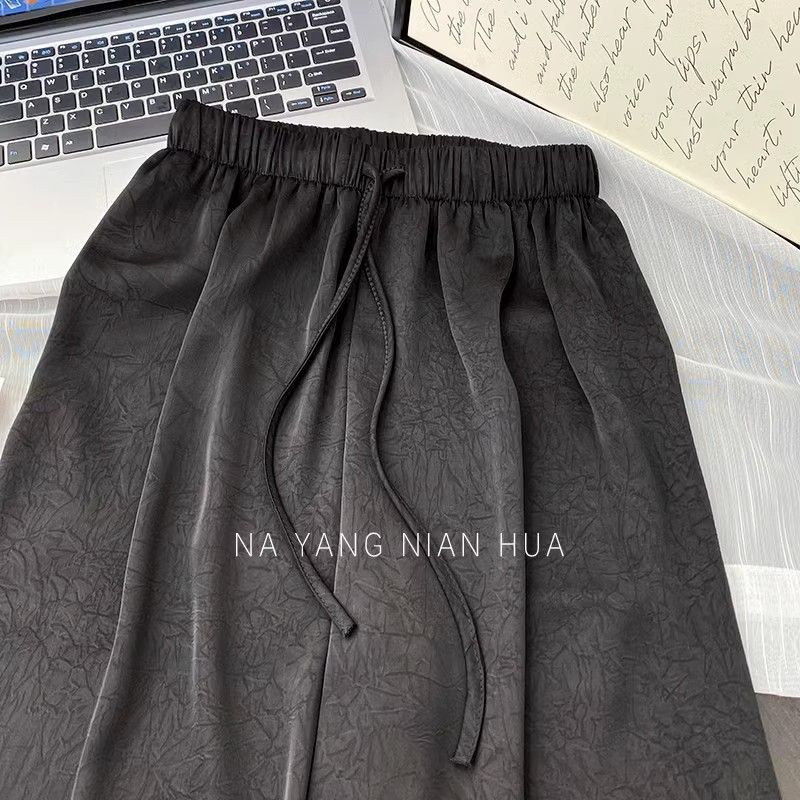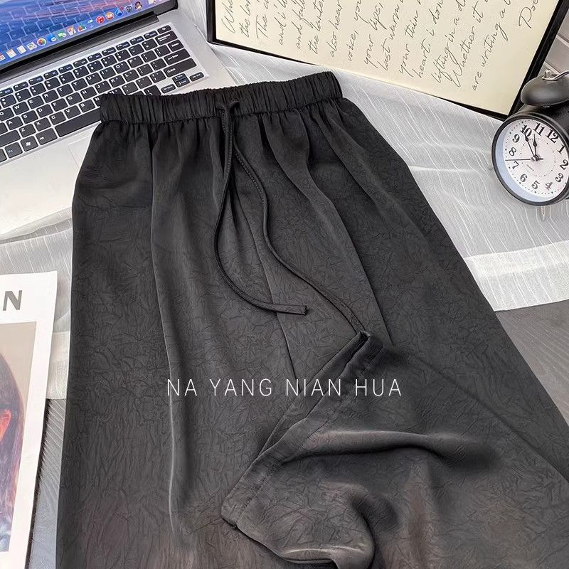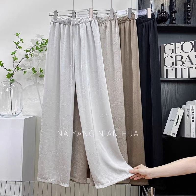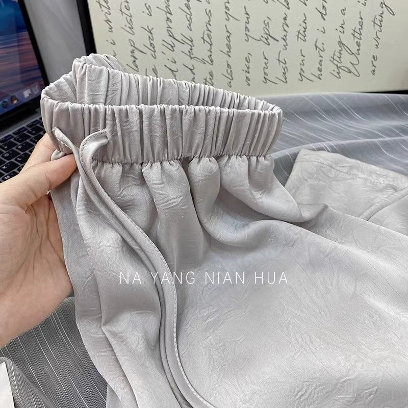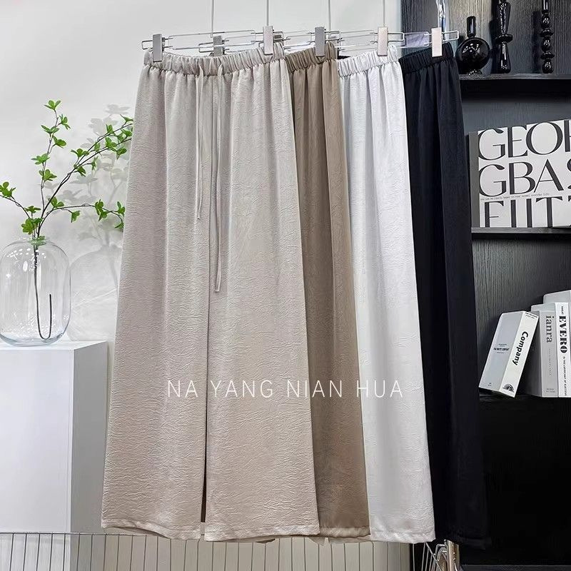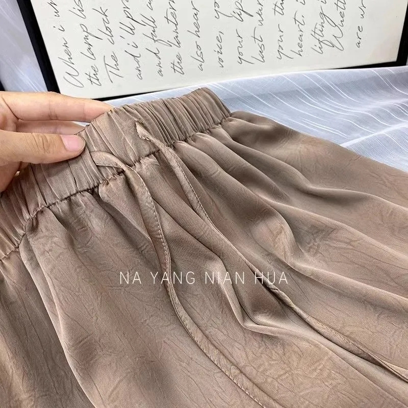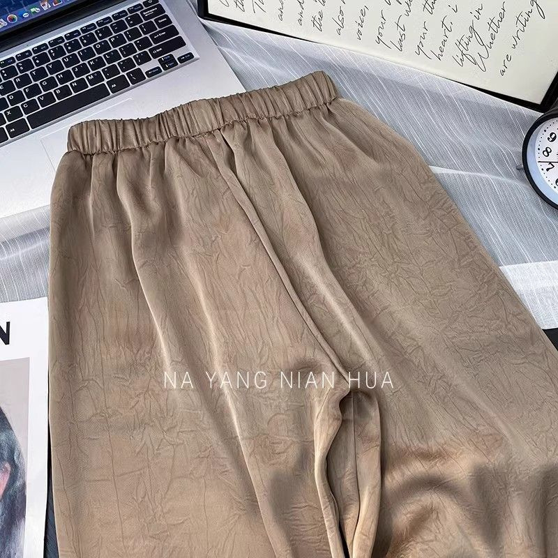 새로운 중국 스타일 국가 스타일 새틴 폭발적인 여성 봄과 여름 주름 높은 허리 넓은 다리 바지스토어 가기