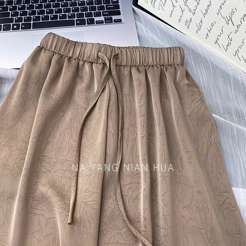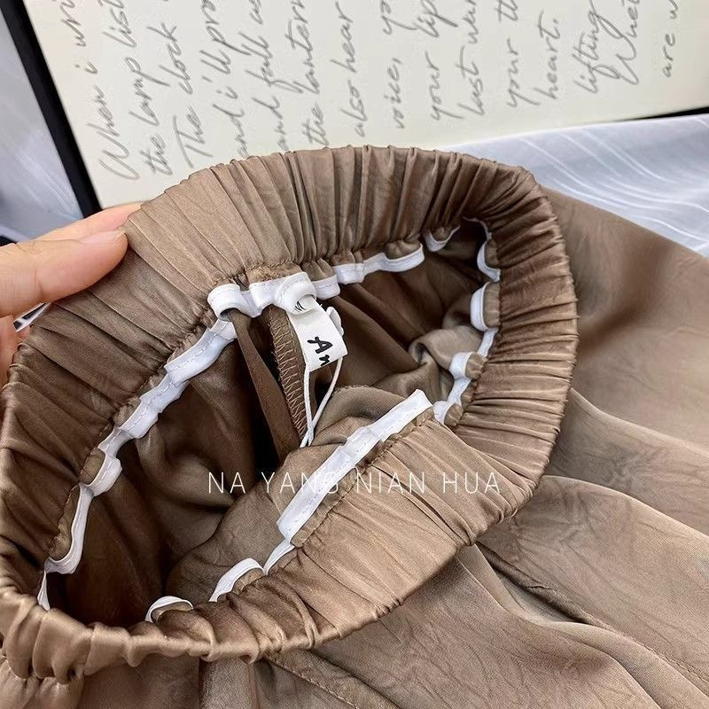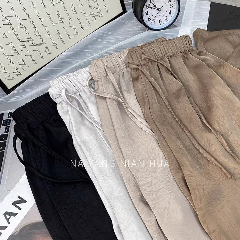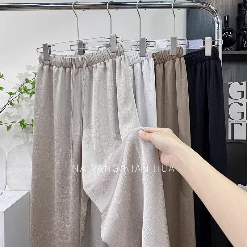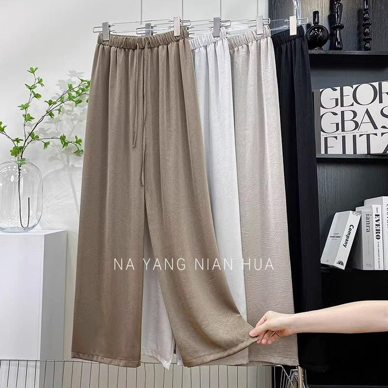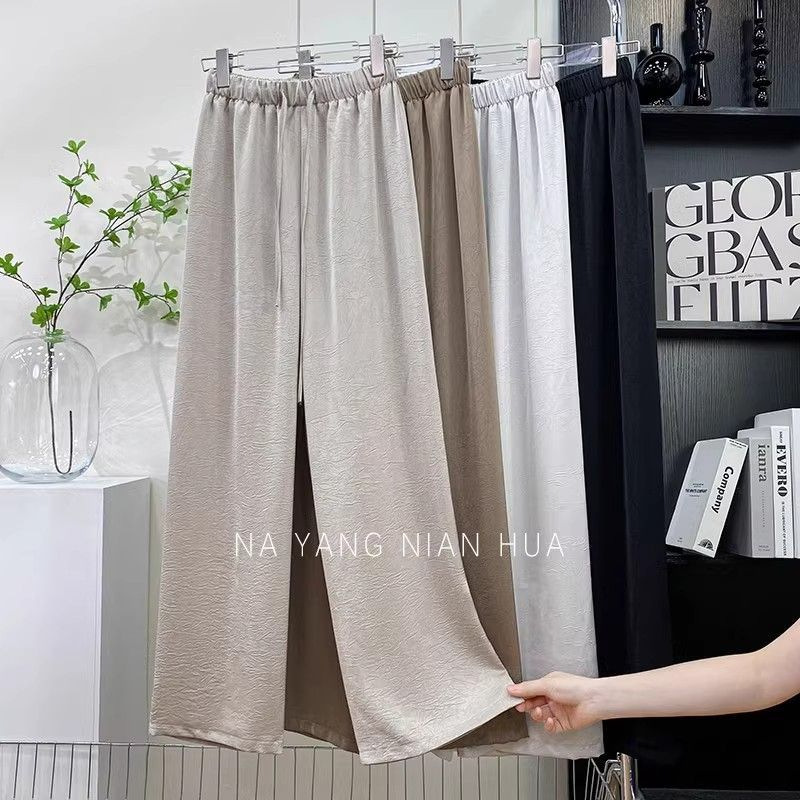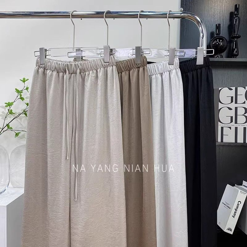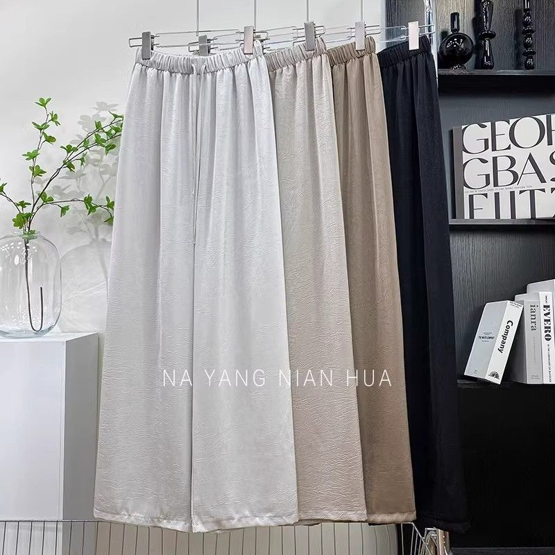 새로운 중국 스타일 국가 스타일 새틴 폭발적인 여성 봄과 여름 주름 높은 허리 넓은 다리 바지스토어 가기