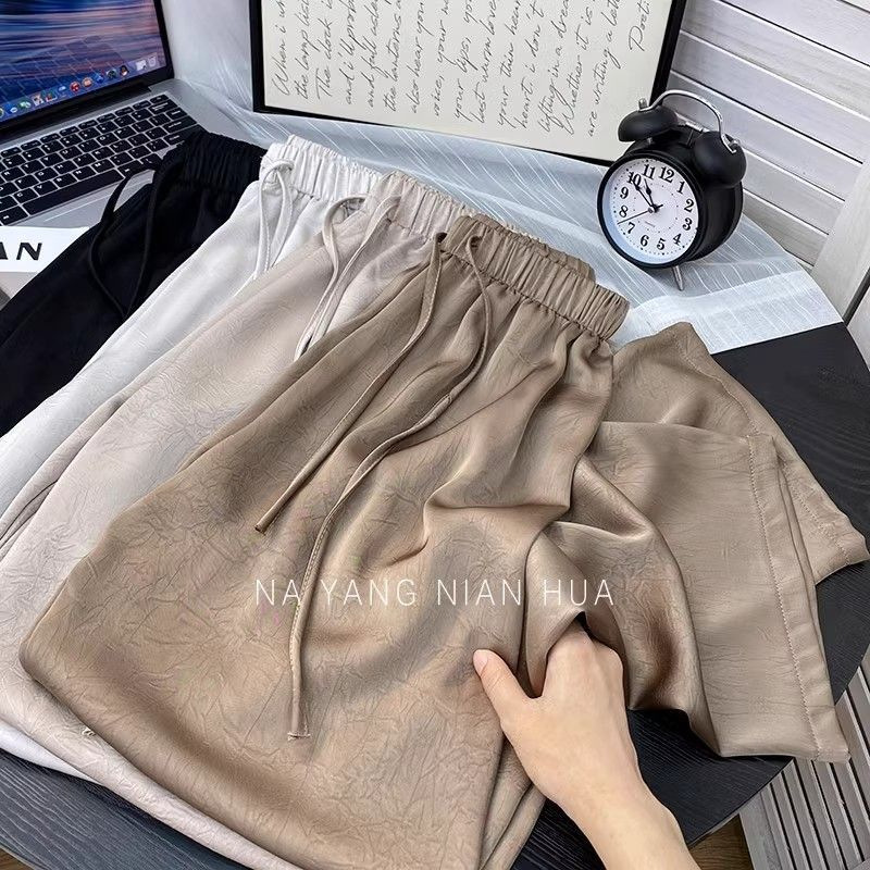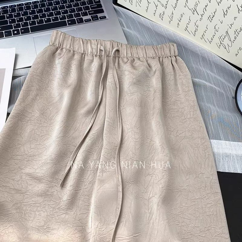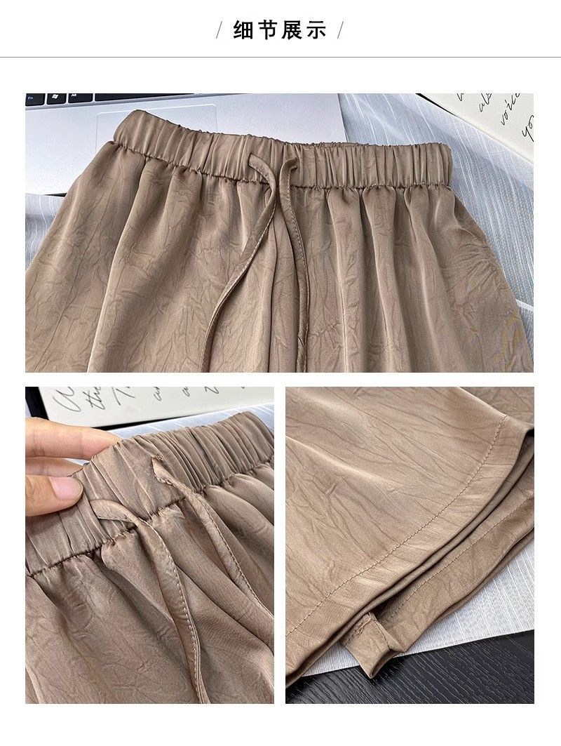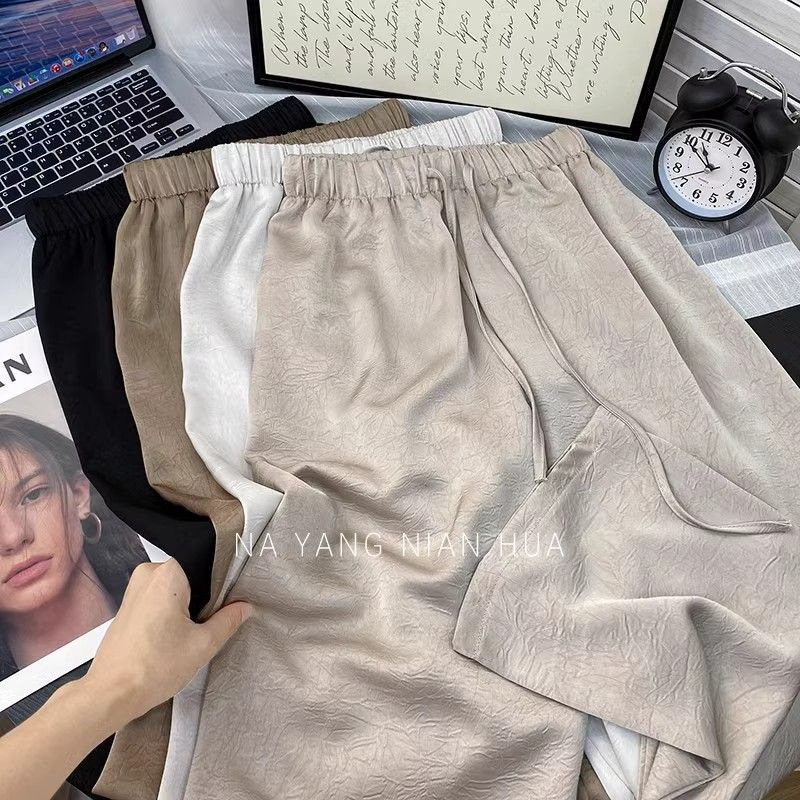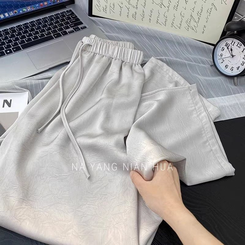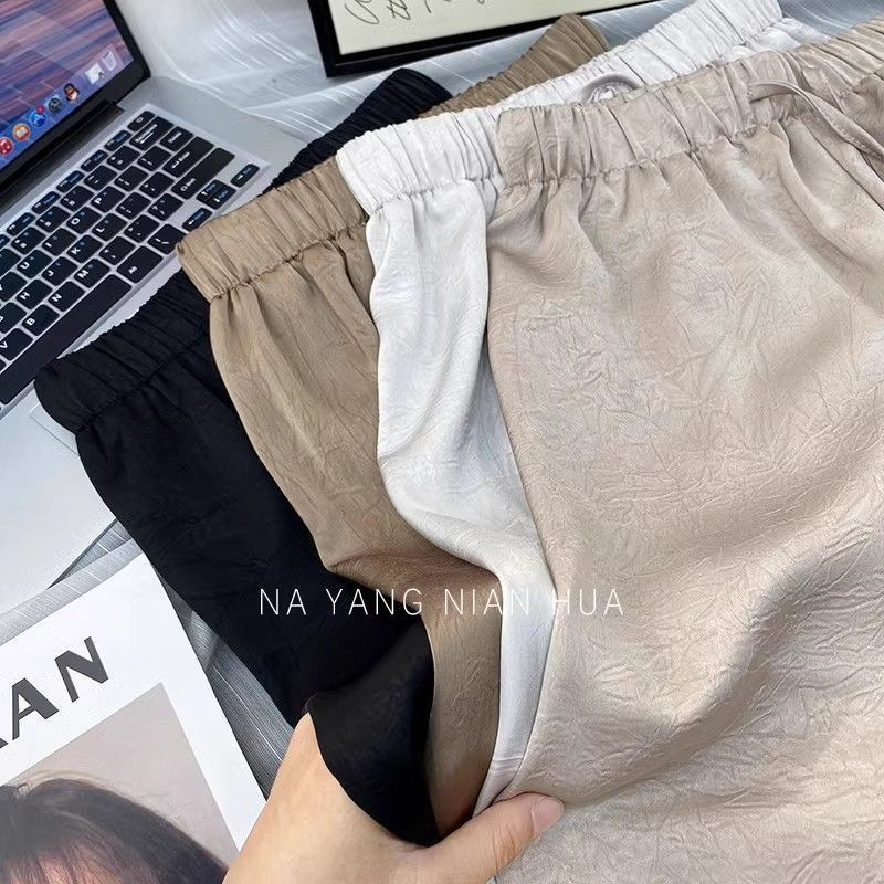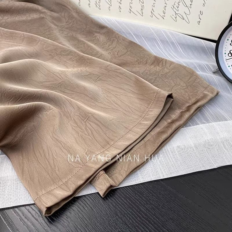 새로운 중국 스타일 국가 스타일 새틴 폭발적인 여성 봄과 여름 주름 높은 허리 넓은 다리 바지스토어 가기
