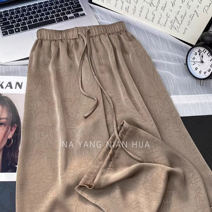 새로운 중국 스타일 국가 스타일 새틴 폭발적인 여성 봄과 여름 주름 높은 허리 넓은 다리 바지